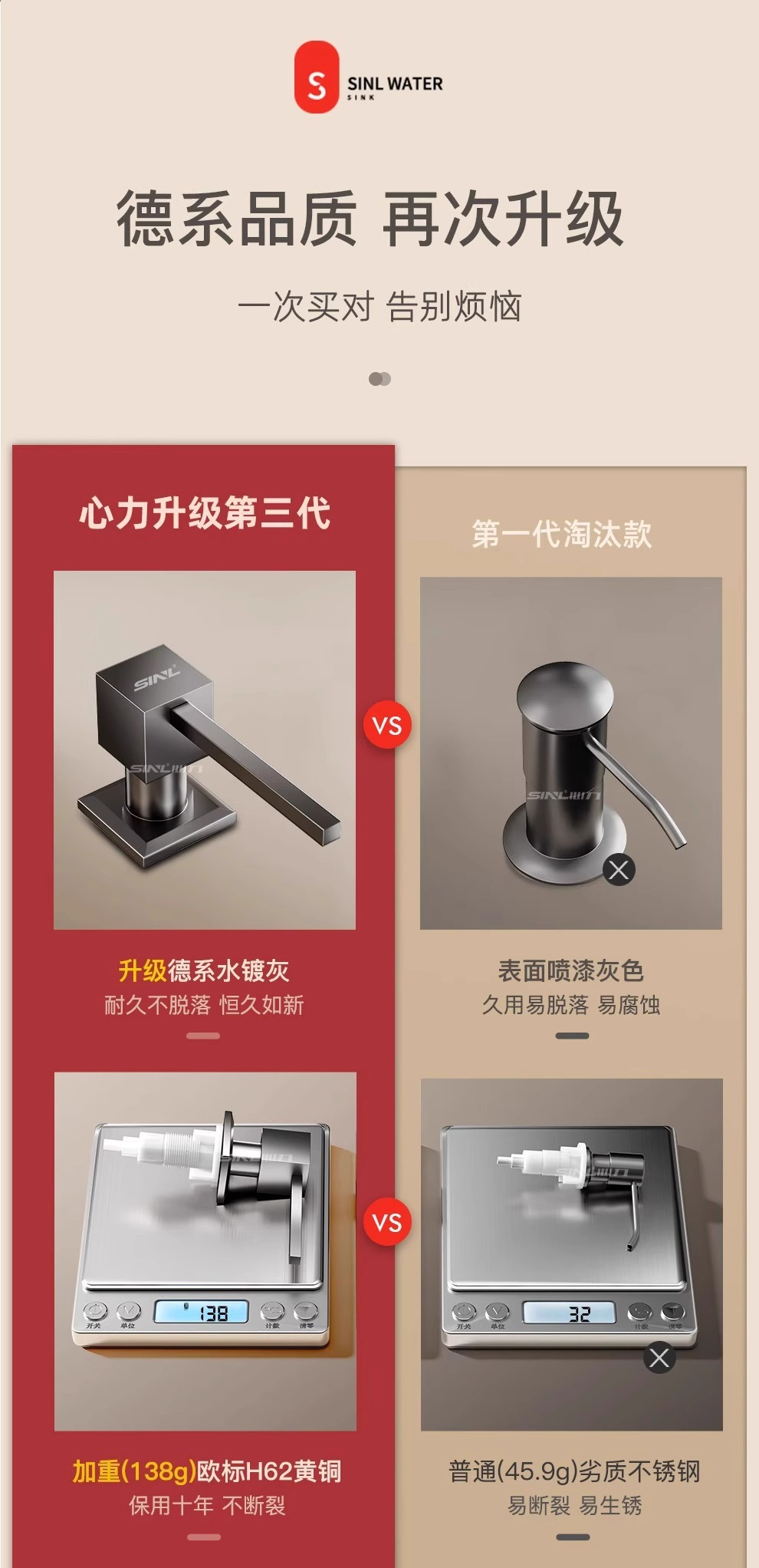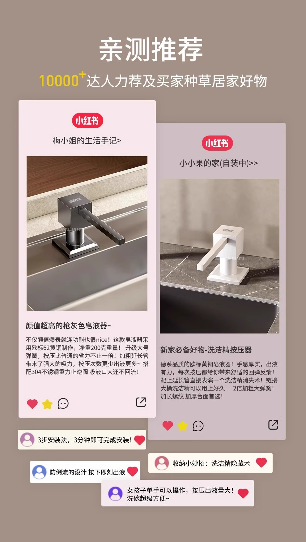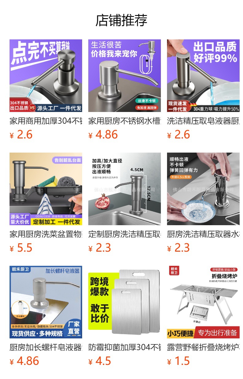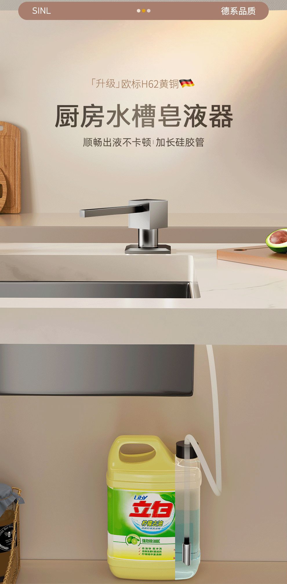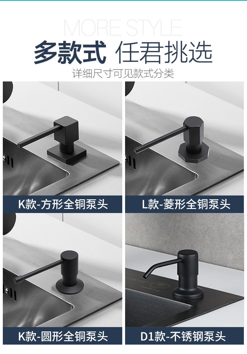 新款水槽方形不锈钢皂液器压取器 洗洁精延长线加长管按压神器