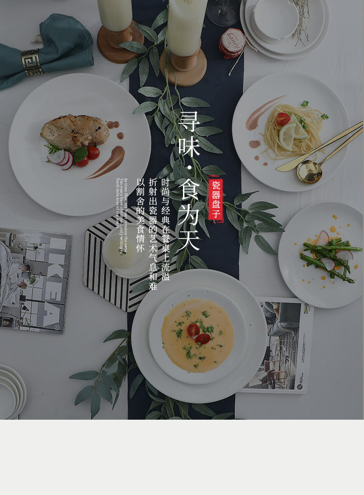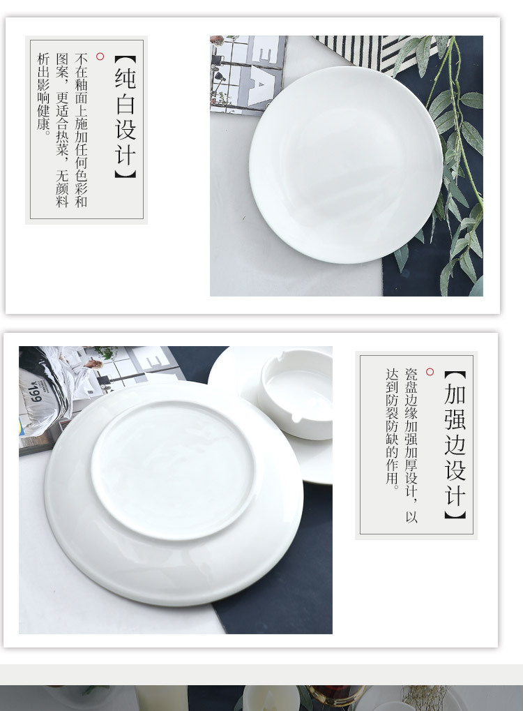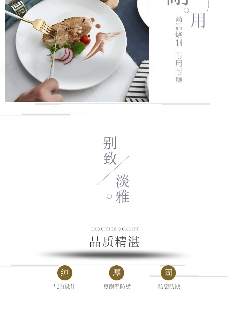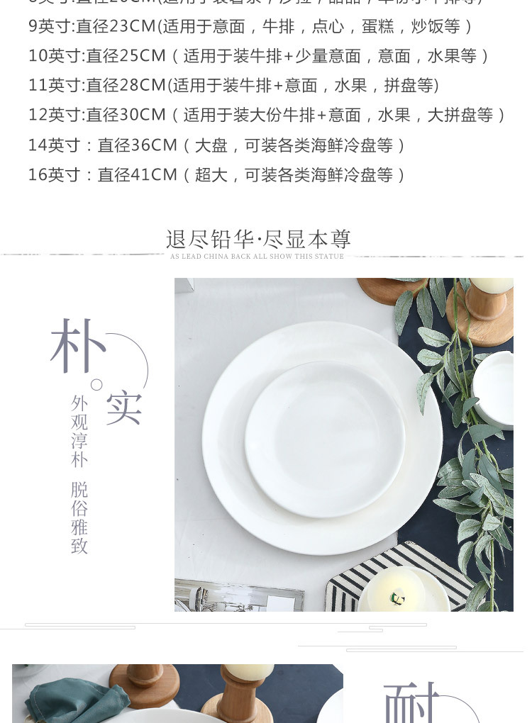 순수한 흰색 스테이크 플레이트 서양 식품 플레이트 얕은 디저트 플레이트 간단한 노르딕 세라믹 식기 호텔 가정용 플레이트 도매스토어 가기