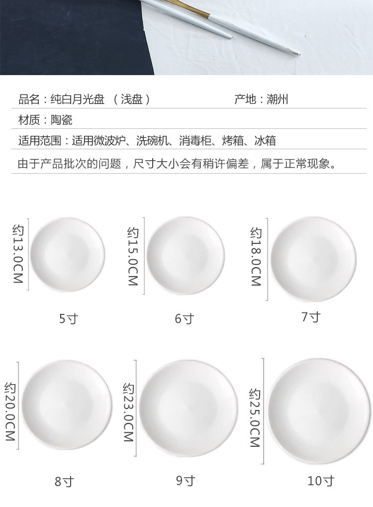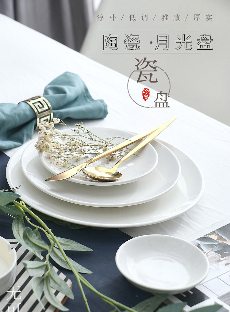 순수한 흰색 스테이크 플레이트 서양 식품 플레이트 얕은 디저트 플레이트 간단한 노르딕 세라믹 식기 호텔 가정용 플레이트 도매