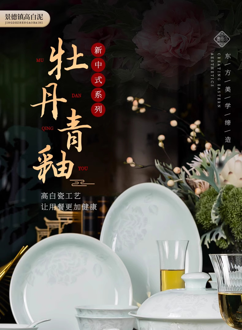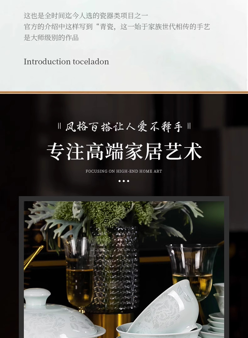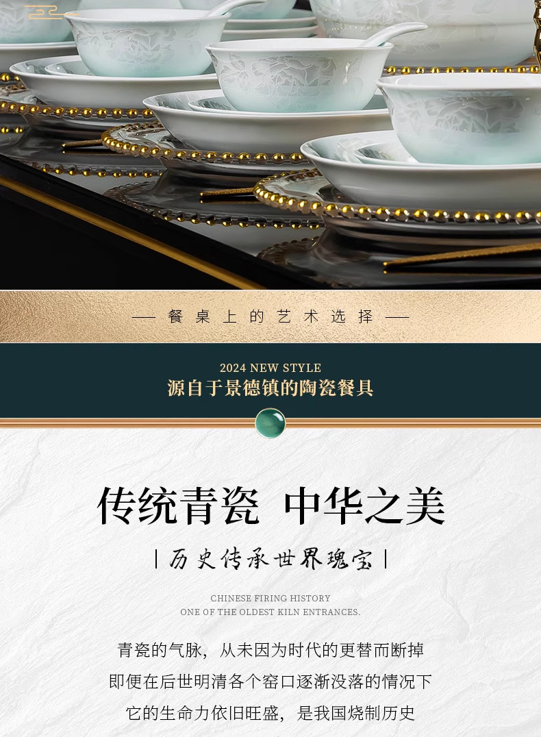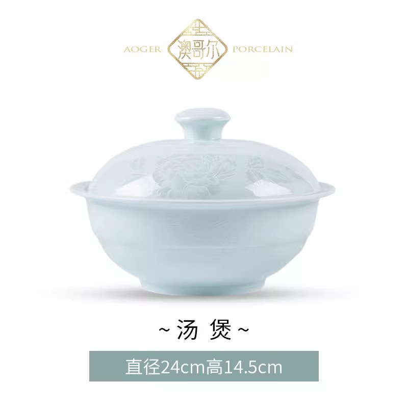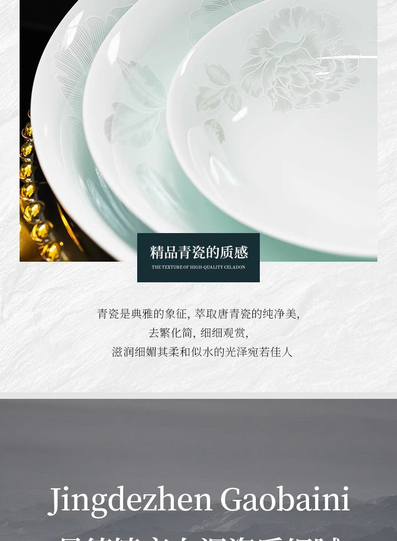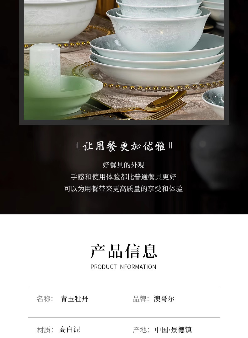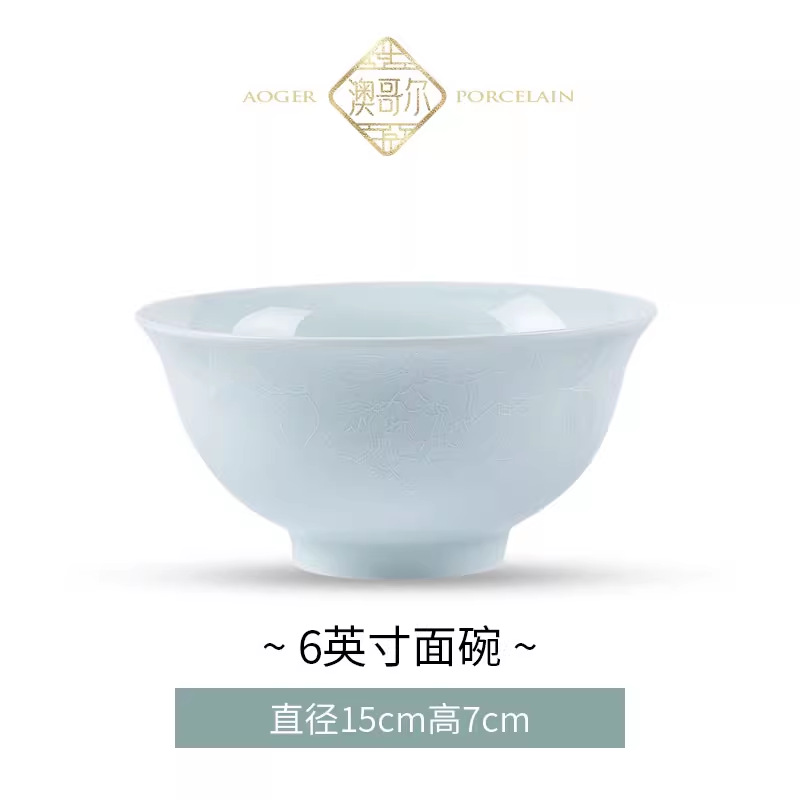 고급 흰색 도자기 요리 및 도금 Jingdezhen 세라믹 식기 고온 녹색 유약 중국 단일 식사 그릇 국수 그릇 수프 그릇스토어 가기