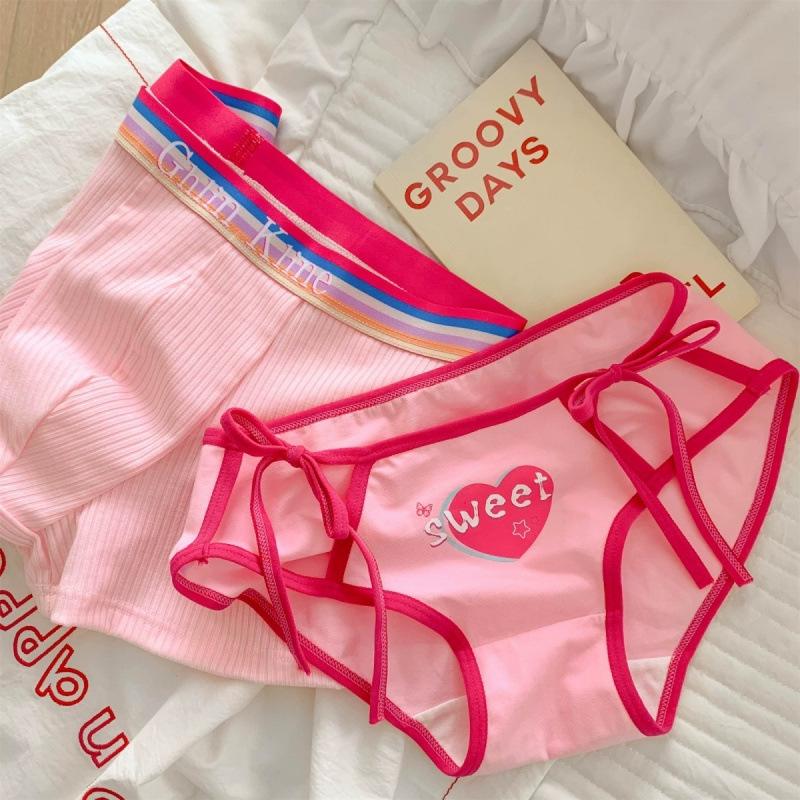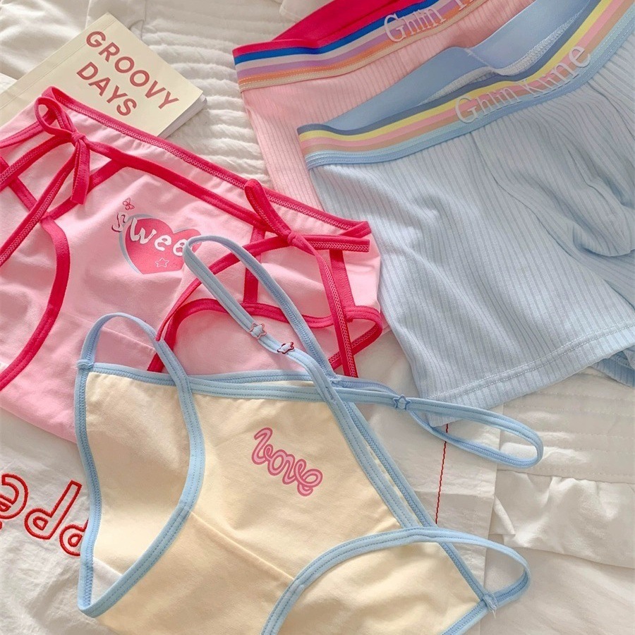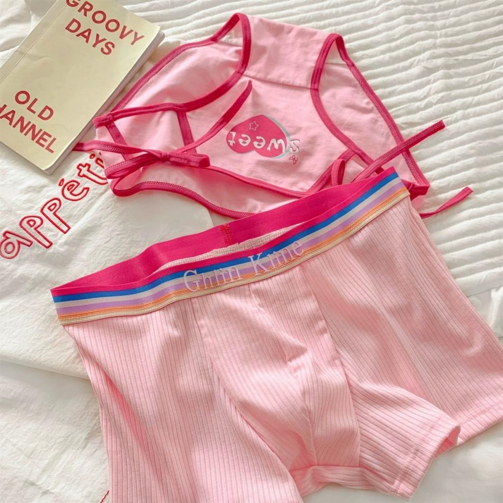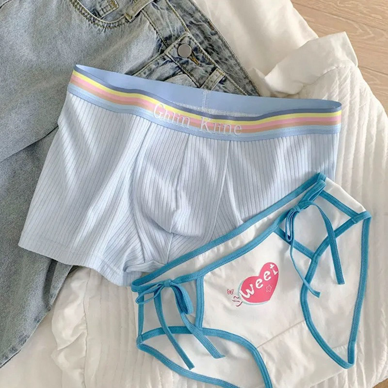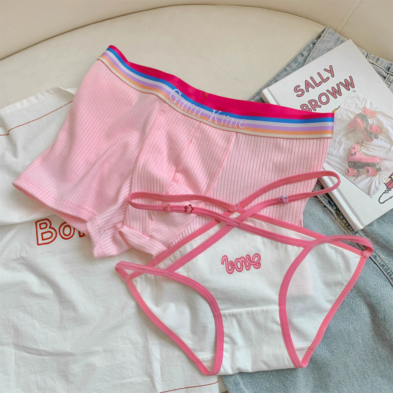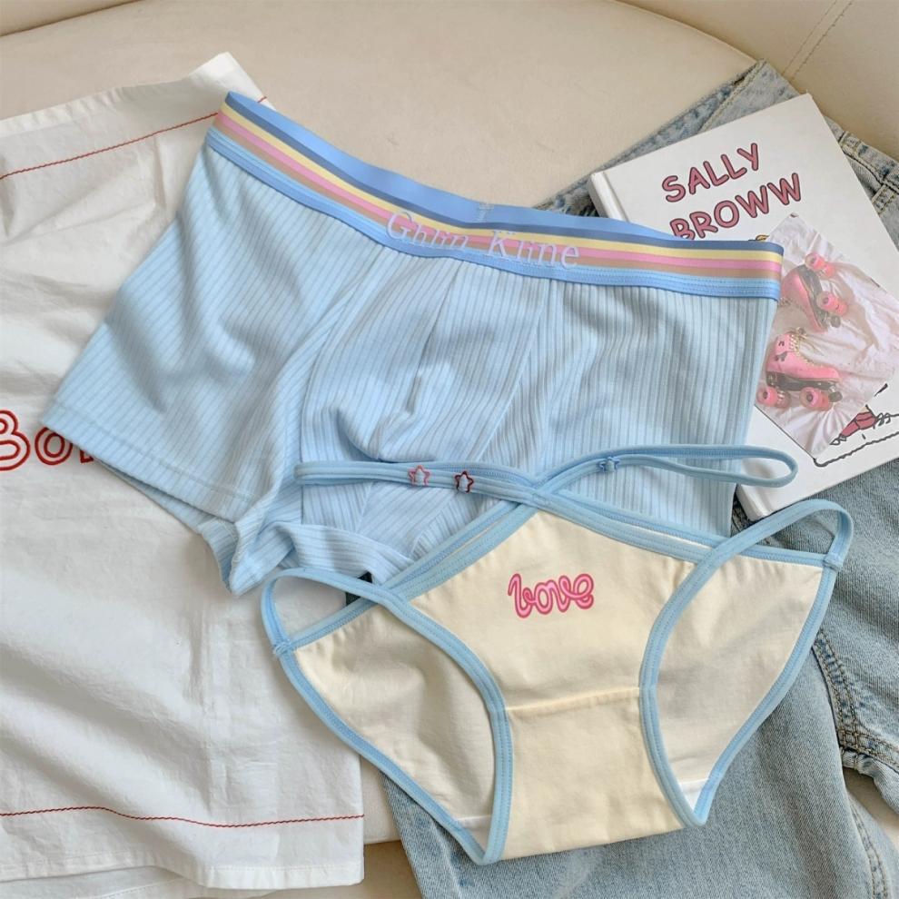 남자와 여자를위한 커플 속옷 행복한 도파민 CP 무지개 속옷 섹시한 새로운 순수한면 귀여운 숙녀스토어 가기
