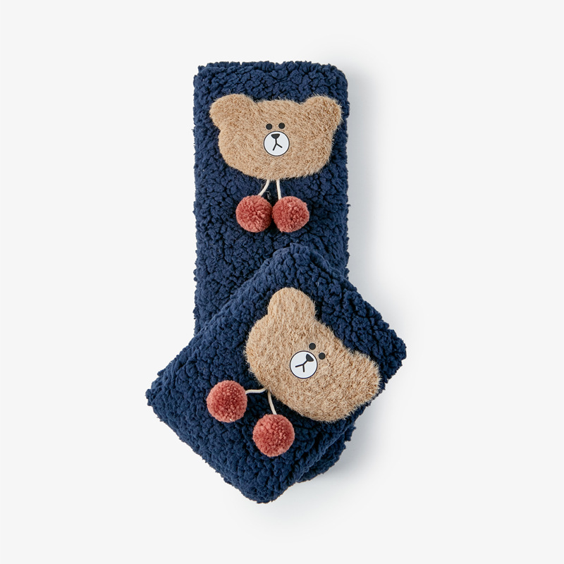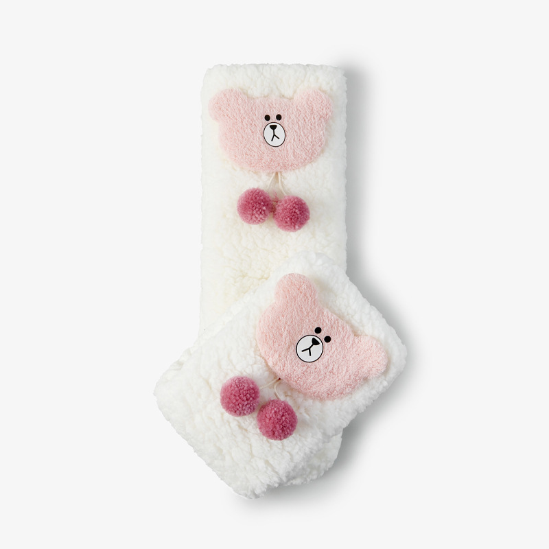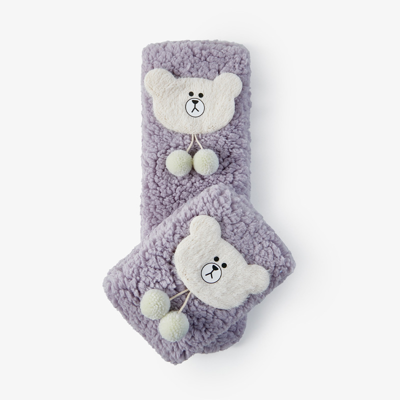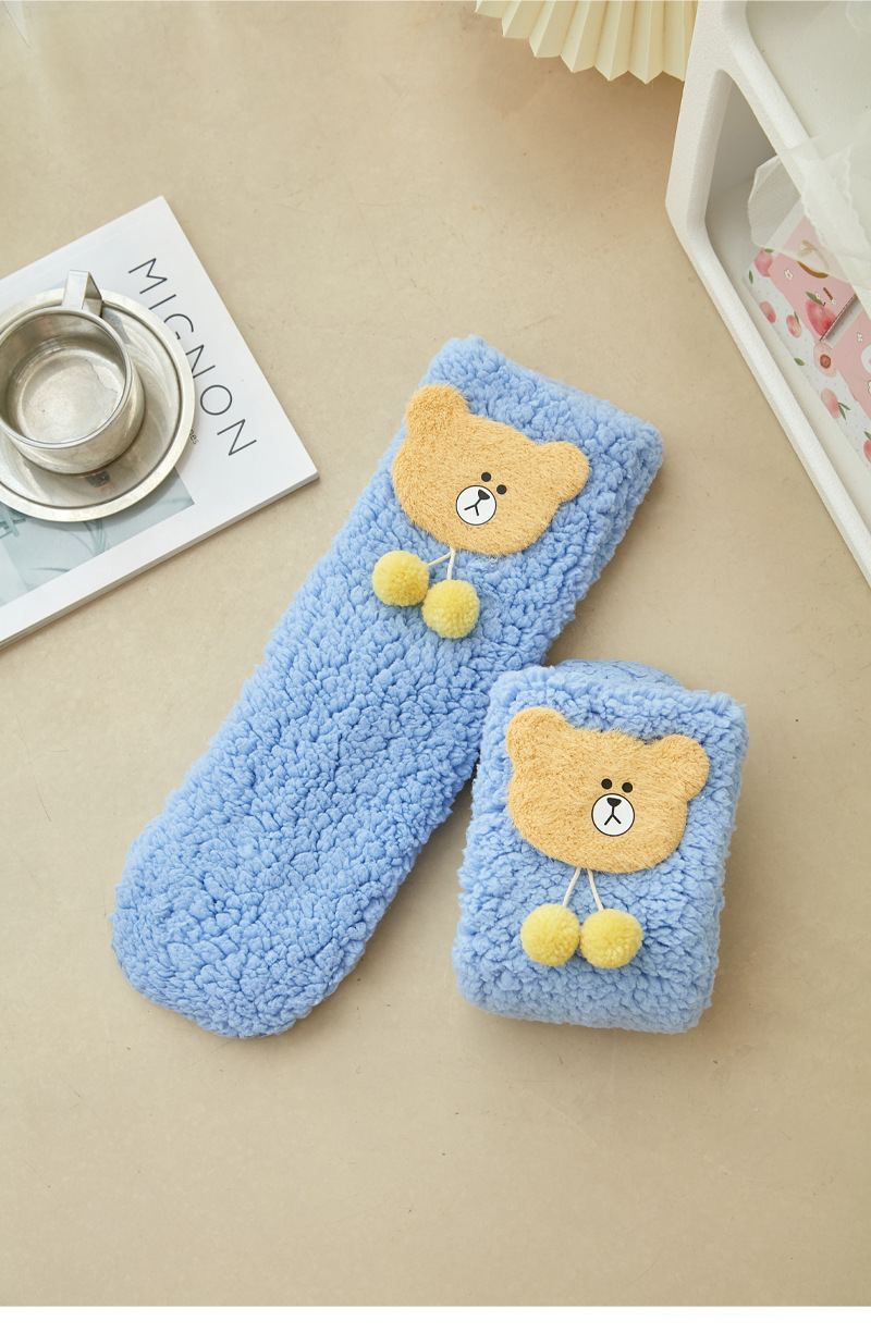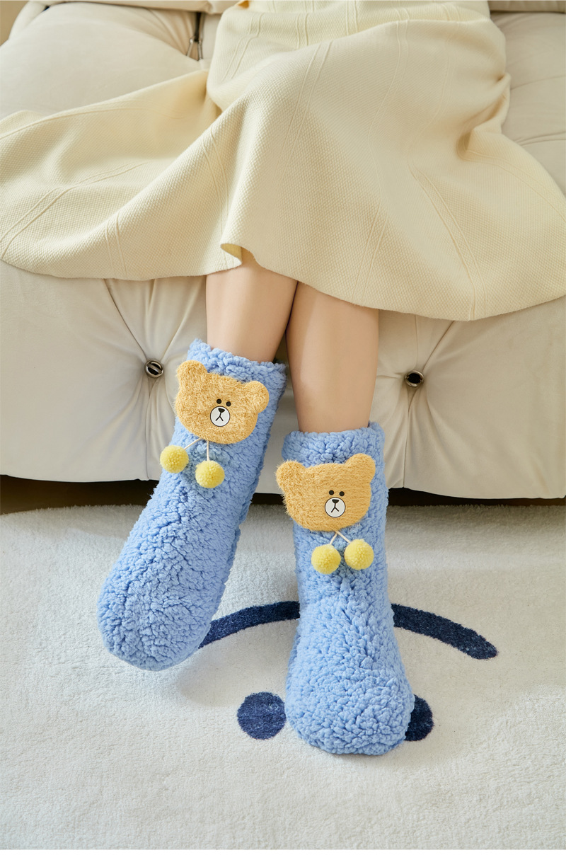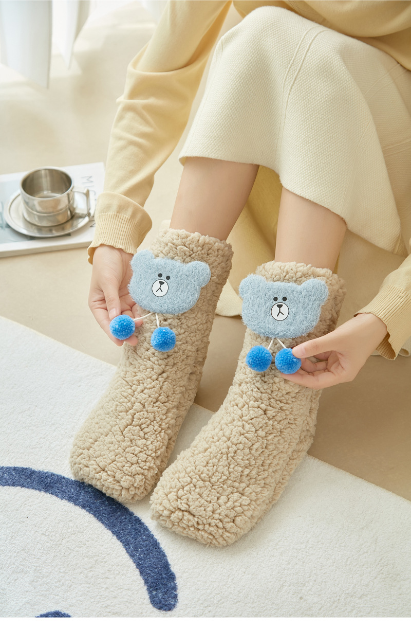 겨울 두꺼운 양고기 양털 수면 양말 여성의 귀여운 만화 곰 공 홈 디스펜싱 미끄럼 방지 바닥 양말