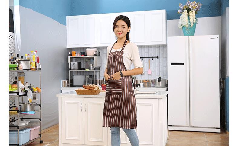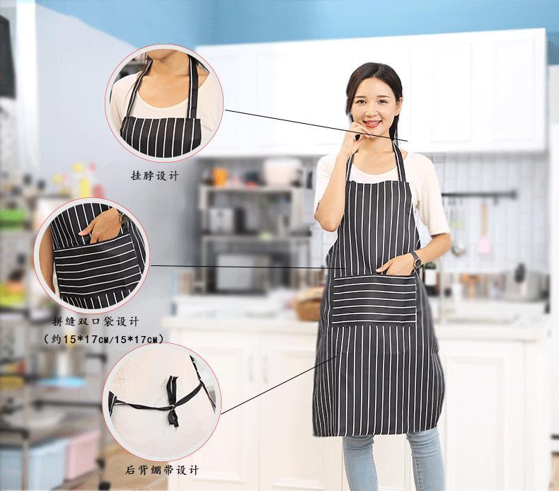 한국 스타일 유행 간단한 방수 주방 식당 커피 숍 긴 소매 홈 앞치마 수직 스트라이프 긴 스타일스토어 가기