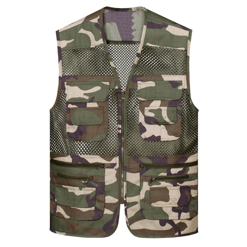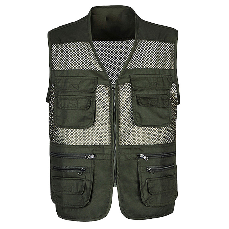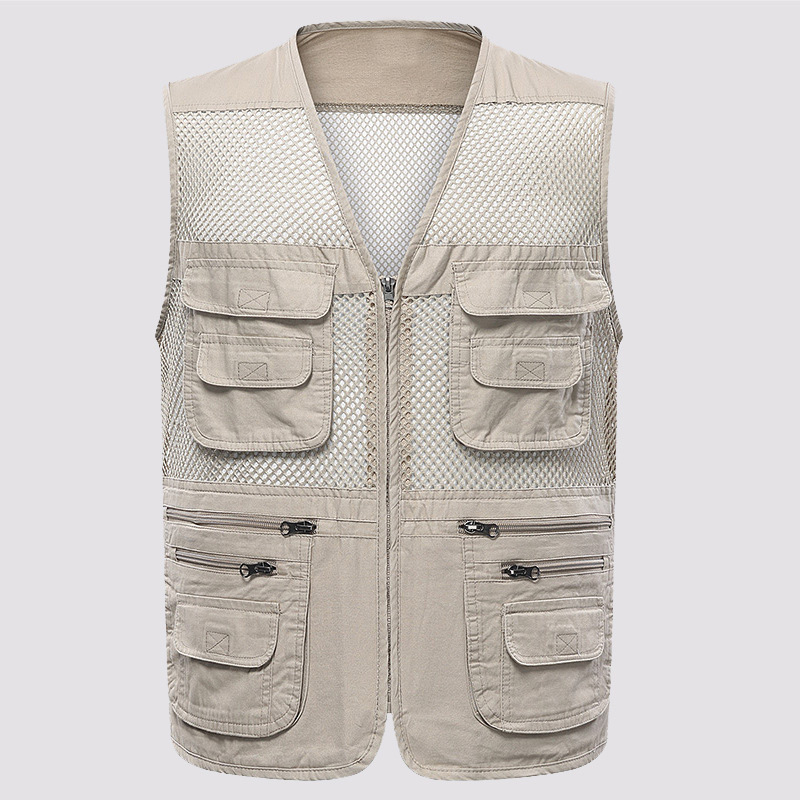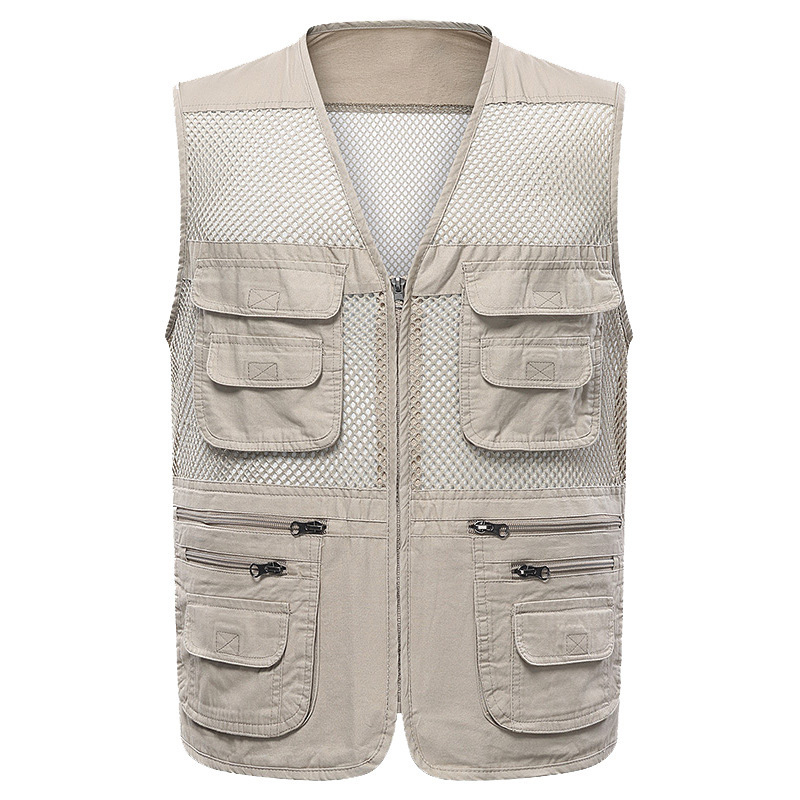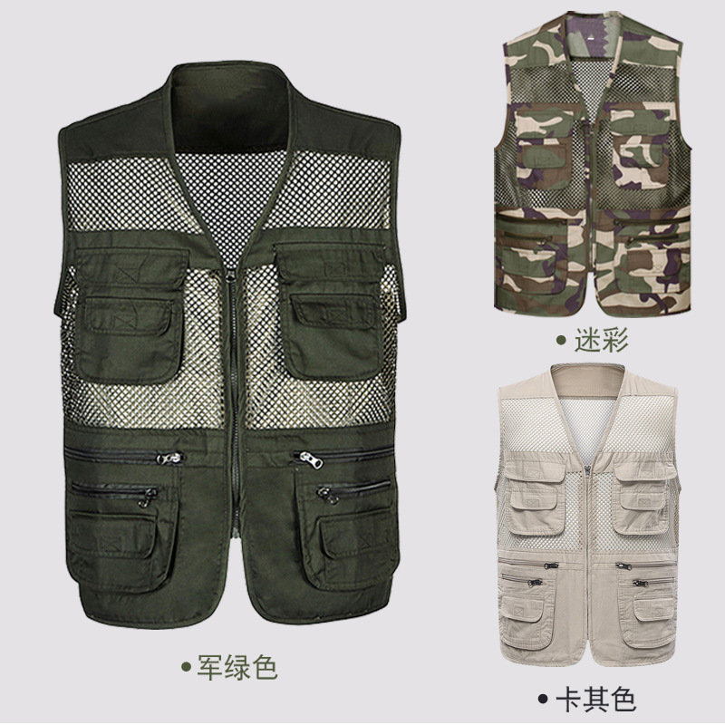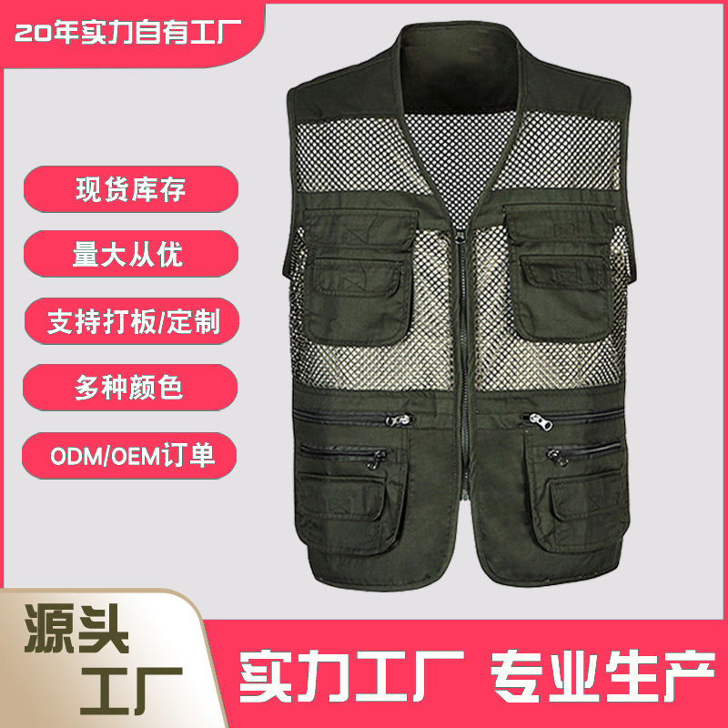 공장 메쉬 조끼 멀티 포켓 통기성 얇은 조끼 낚시 사진 등산 대외 무역 도매 플러스 로고