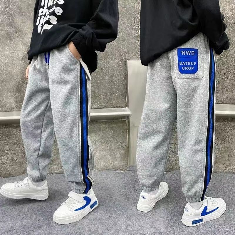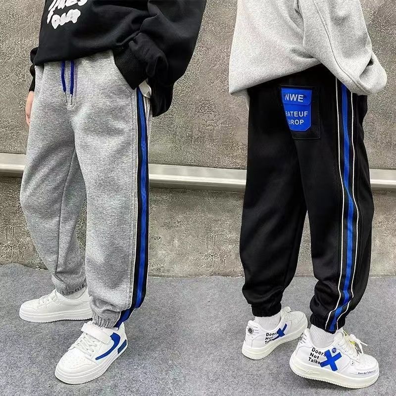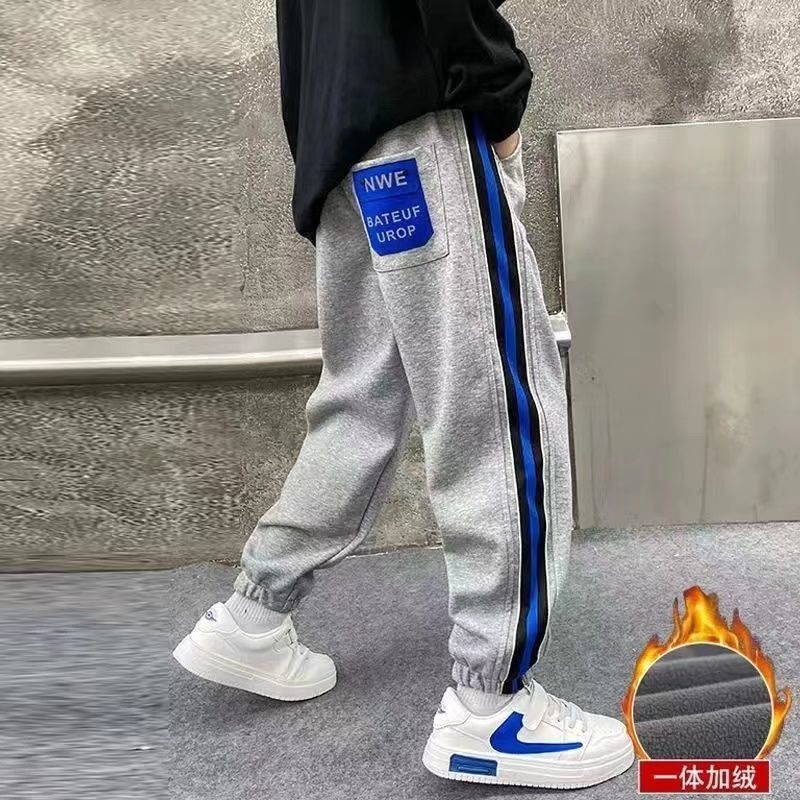 소년 스포츠 바지 2025 봄, 가을 새로운 스타일 어린이 중대형 어린이 가을, 겨울 운동복 바지 플러스 벨벳 캐주얼 가을 의류 소년스토어 가기