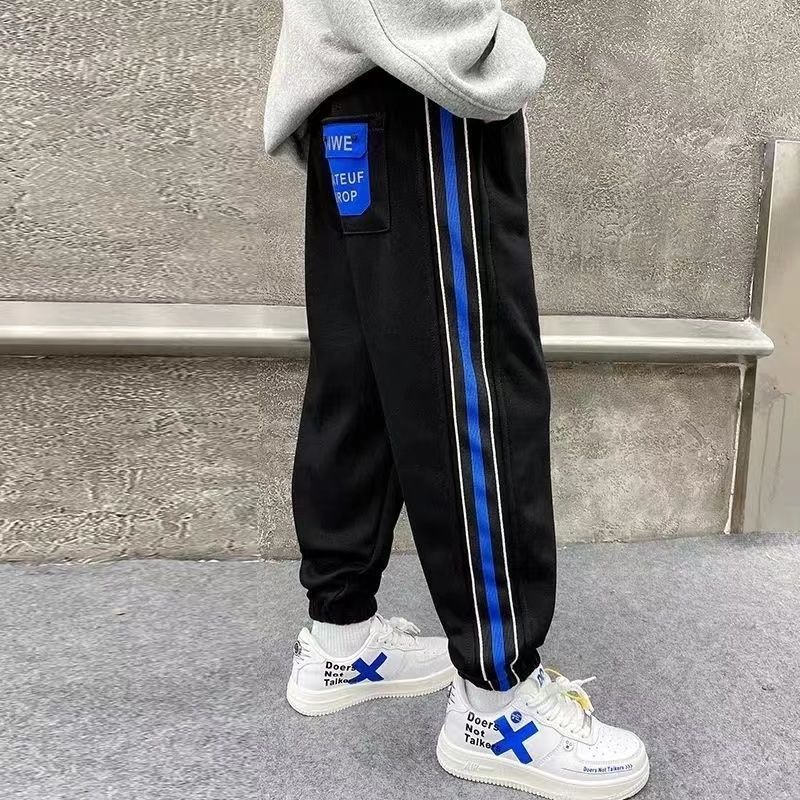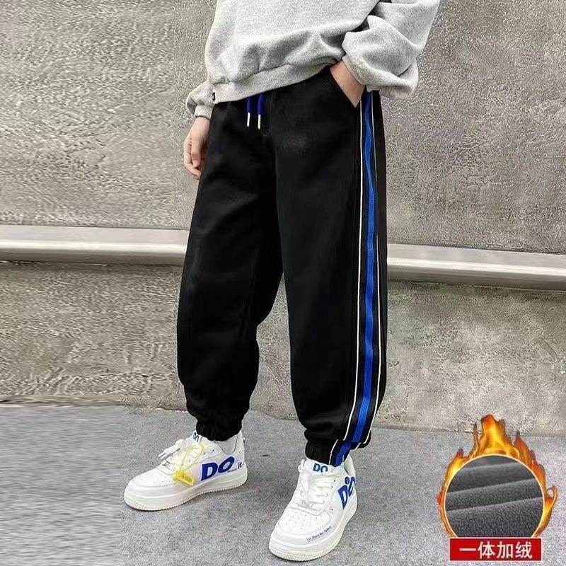소년 스포츠 바지 2025 봄, 가을 새로운 스타일 어린이 중대형 어린이 가을, 겨울 운동복 바지 플러스 벨벳 캐주얼 가을 의류 소년