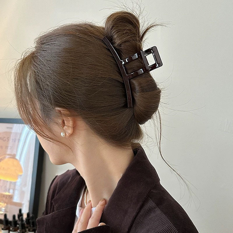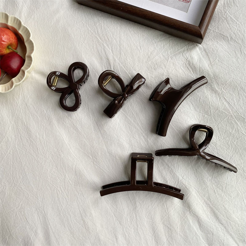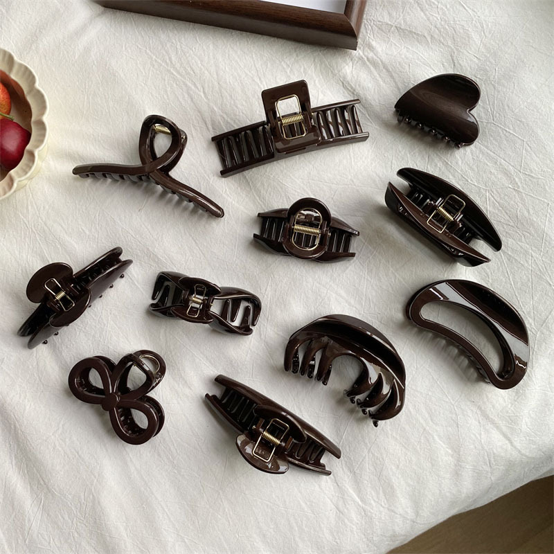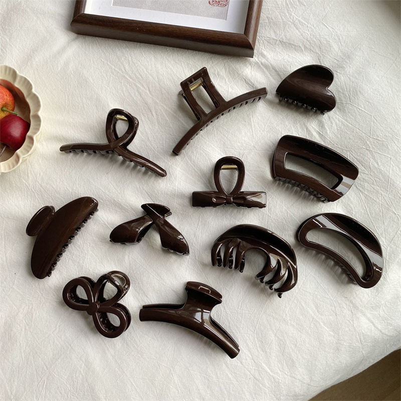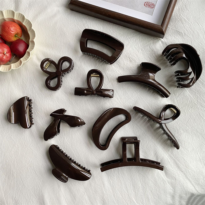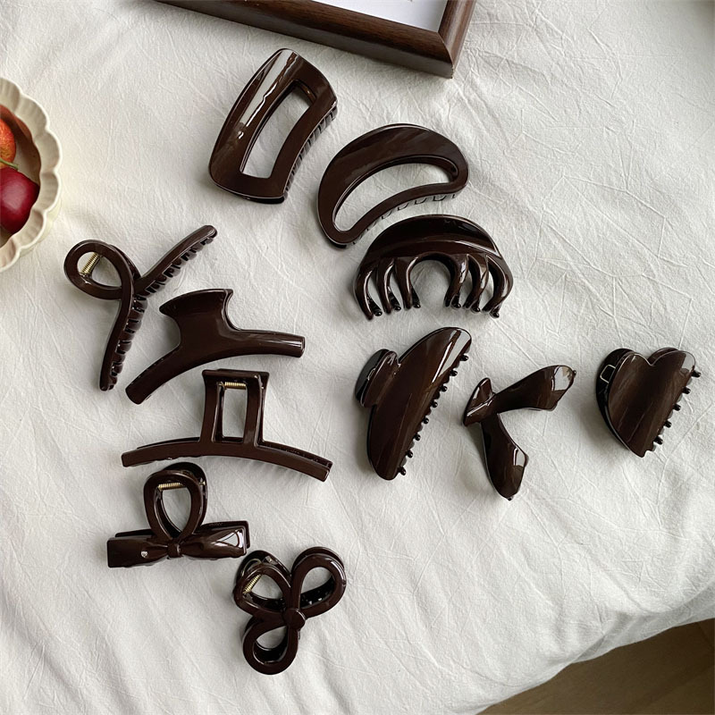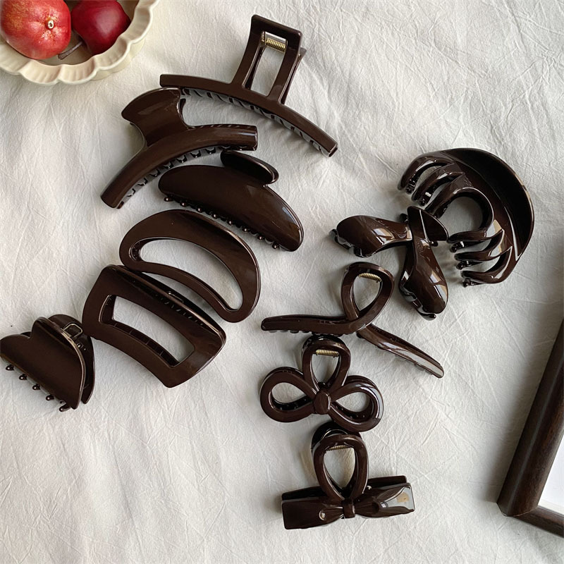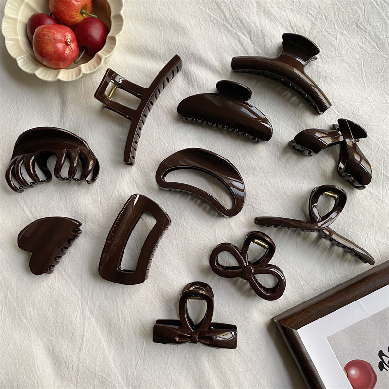 고급 초콜릿 컬러 대형 그랩 클립 다크 브라운 고급 플래시 PC 상어 클립 한국 스타일 Ins 스타일 헤어 그랩 디스크 헤어 헤드웨어스토어 가기