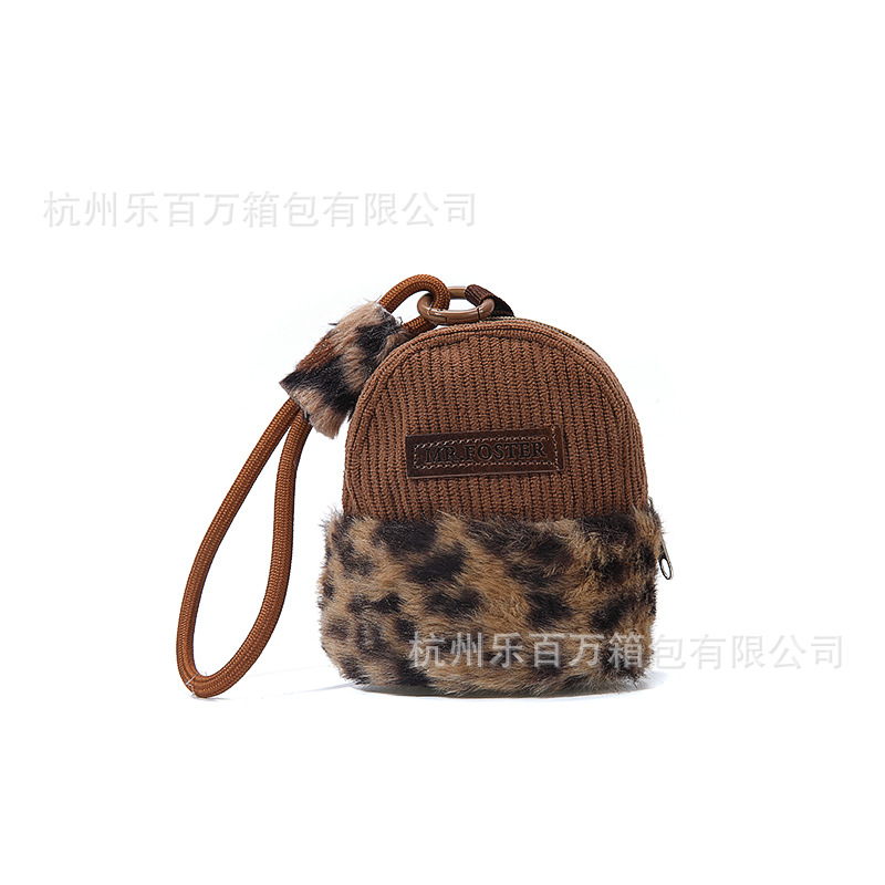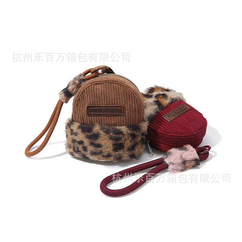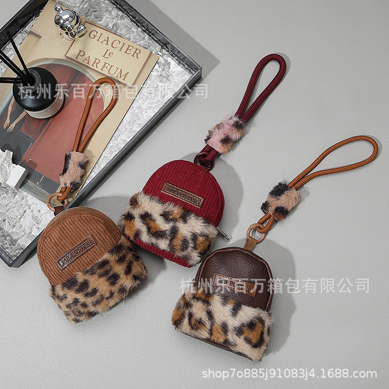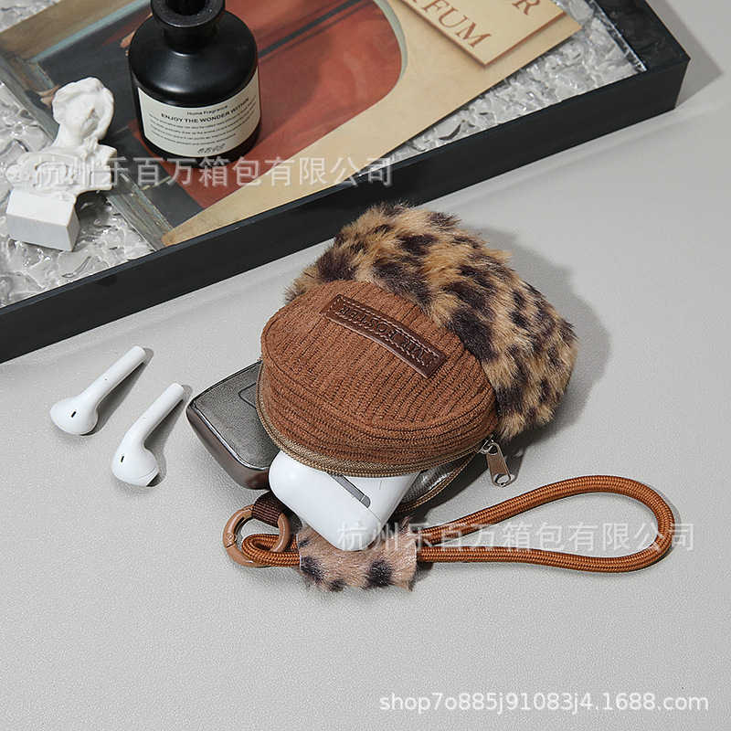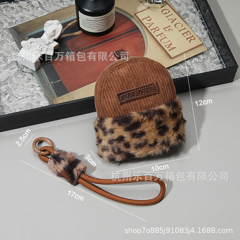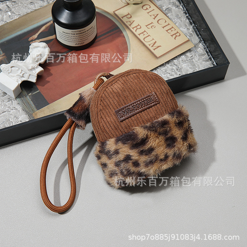 가을과 겨울 새로운 빈티지 레오파드 모자 귀여운 휴대 전화 끈 여성 휴대 전화 케이스 펜던트 변경 카드 가방 보관 가방스토어 가기