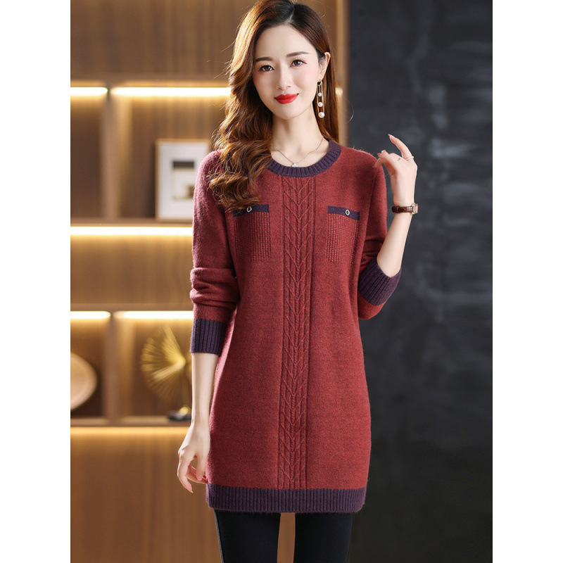 겨울 중간 길이의 스웨터 여성의 새로운 도착 스타일 하단 커버 스웨터 원피스 가을과 겨울 내부 두꺼운 스웨터베이스 셔츠스토어 가기