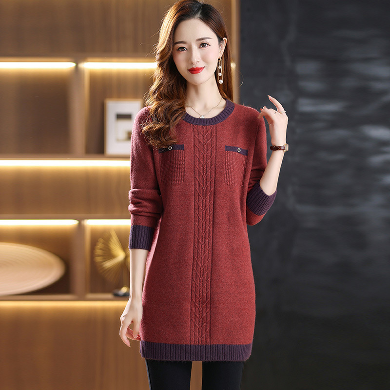 겨울 중간 길이의 스웨터 여성의 새로운 도착 스타일 하단 커버 스웨터 원피스 가을과 겨울 내부 두꺼운 스웨터베이스 셔츠