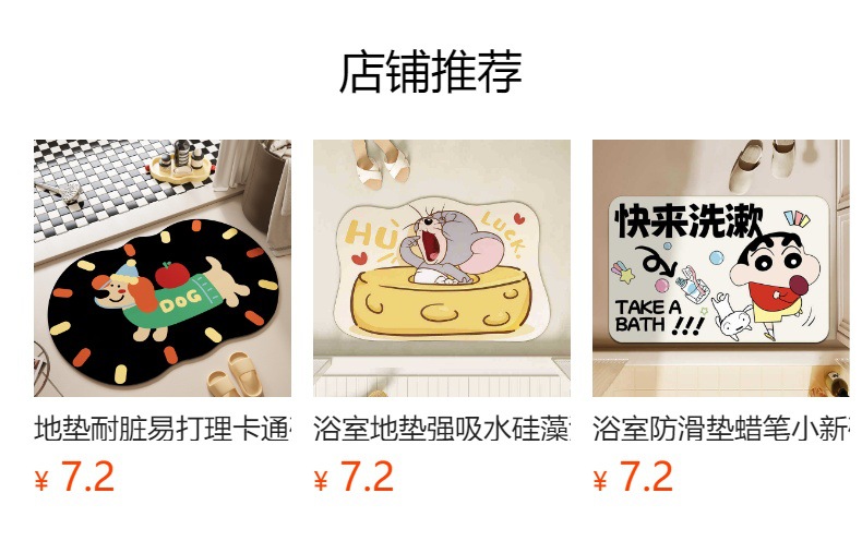 욕실 흡수성 발 매트 만화 가정용 Diatom 진흙 매트 화장실 문 착용 방지 미끄럼 방지 매트스토어 가기