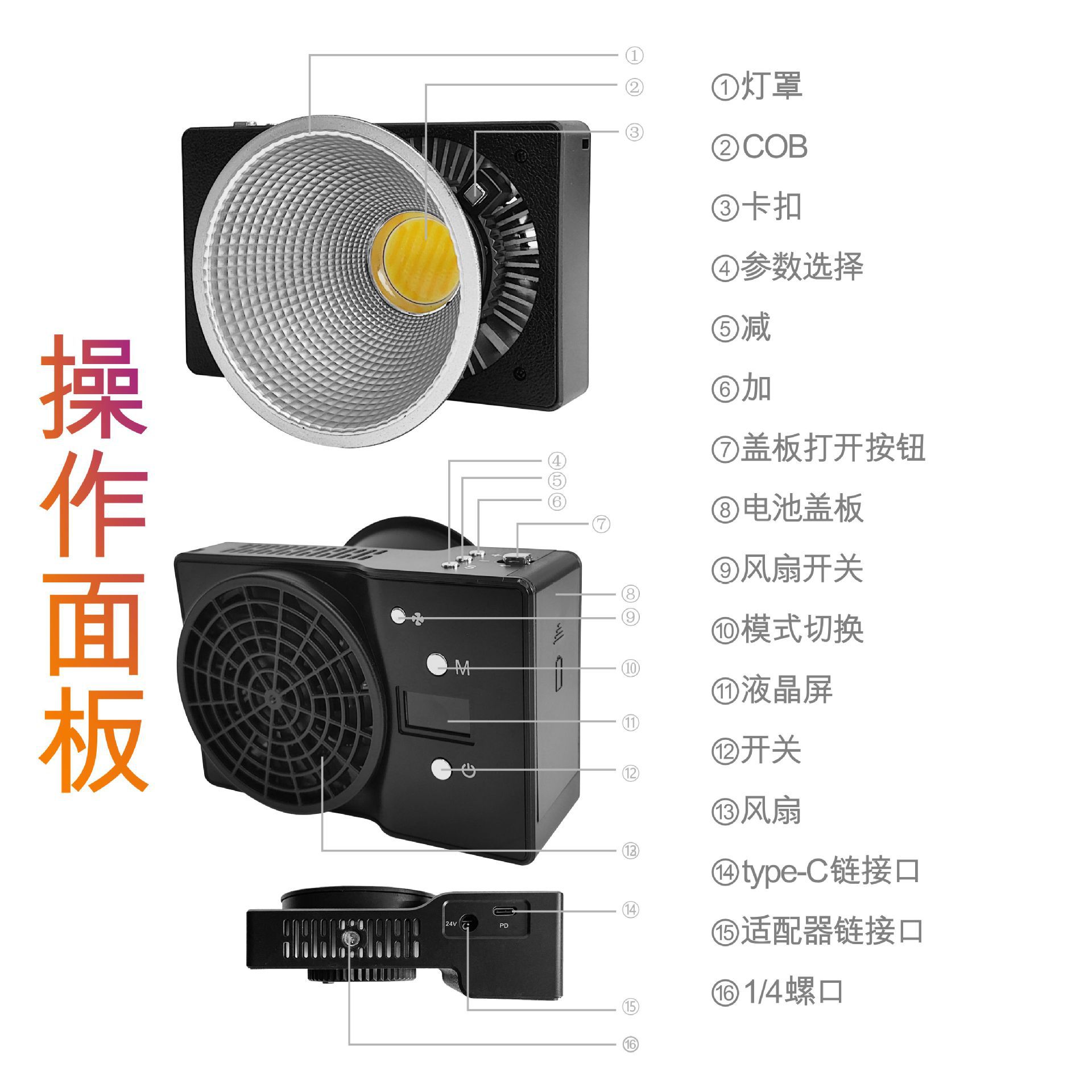100W 야외 채우기 라이트 메탈 라이브 라이트 COB 사진 라이트 뷰티 플래시