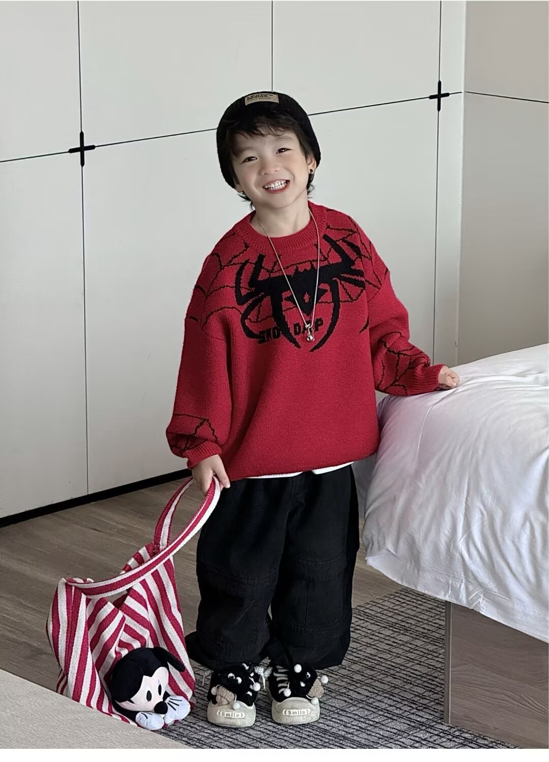 소년 스웨터 2024 년 가을 겨울 소년 겨울 착용 어린이 니트 양모 탑스토어 가기