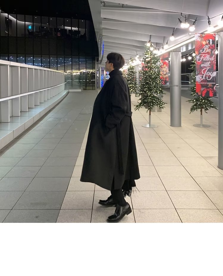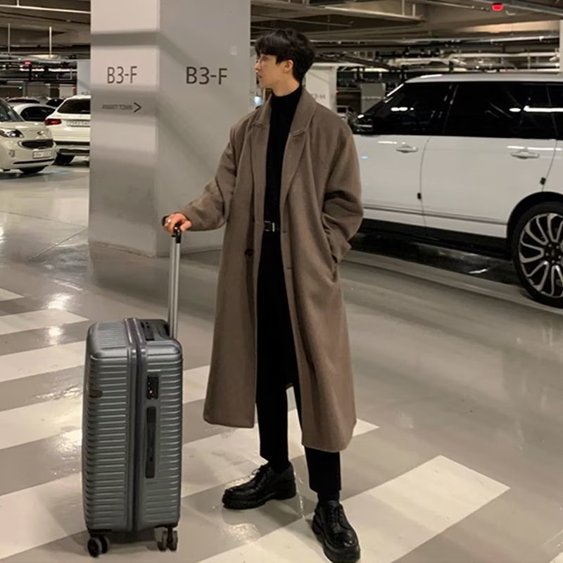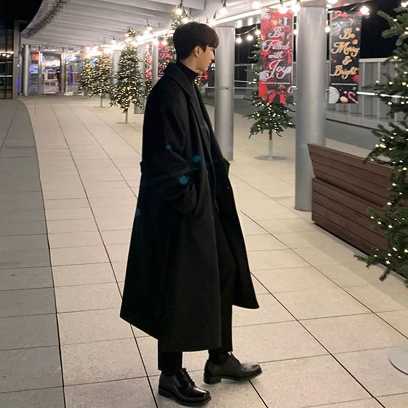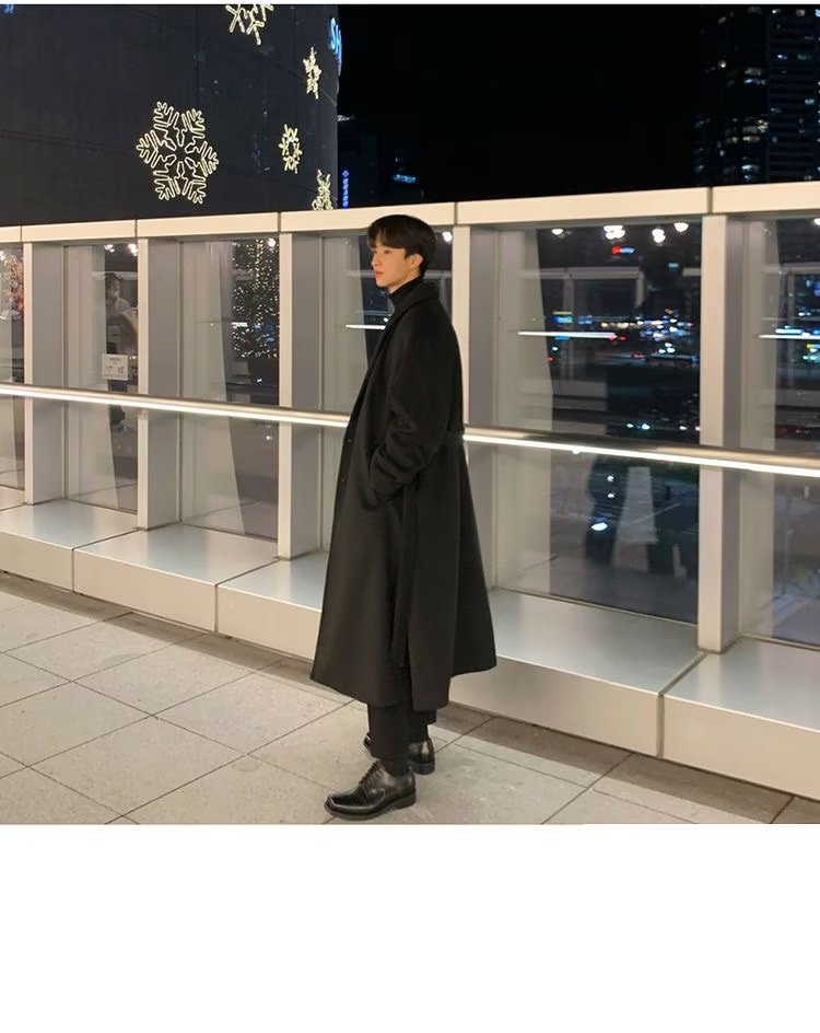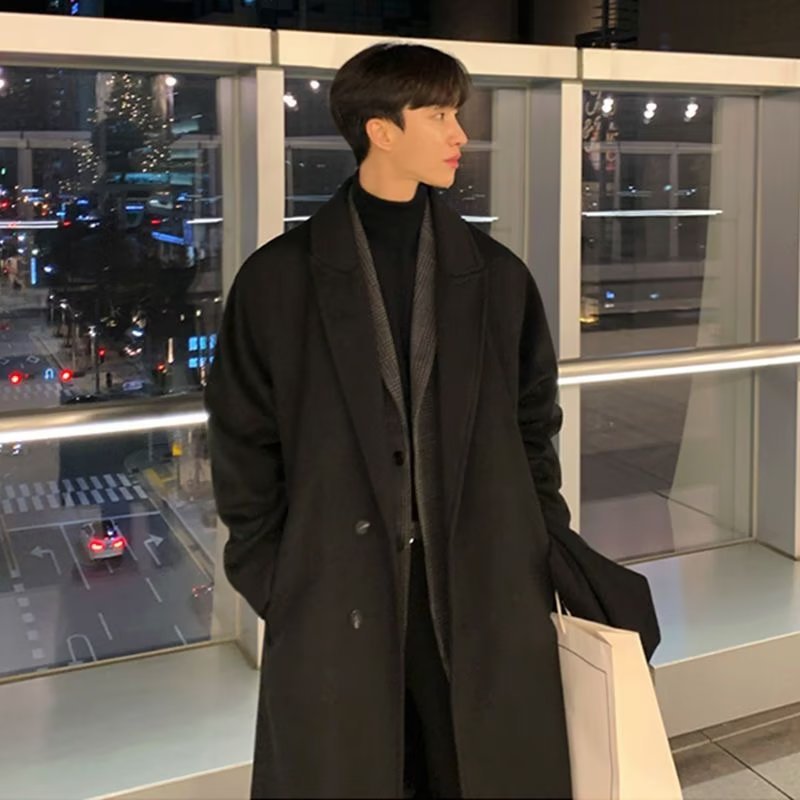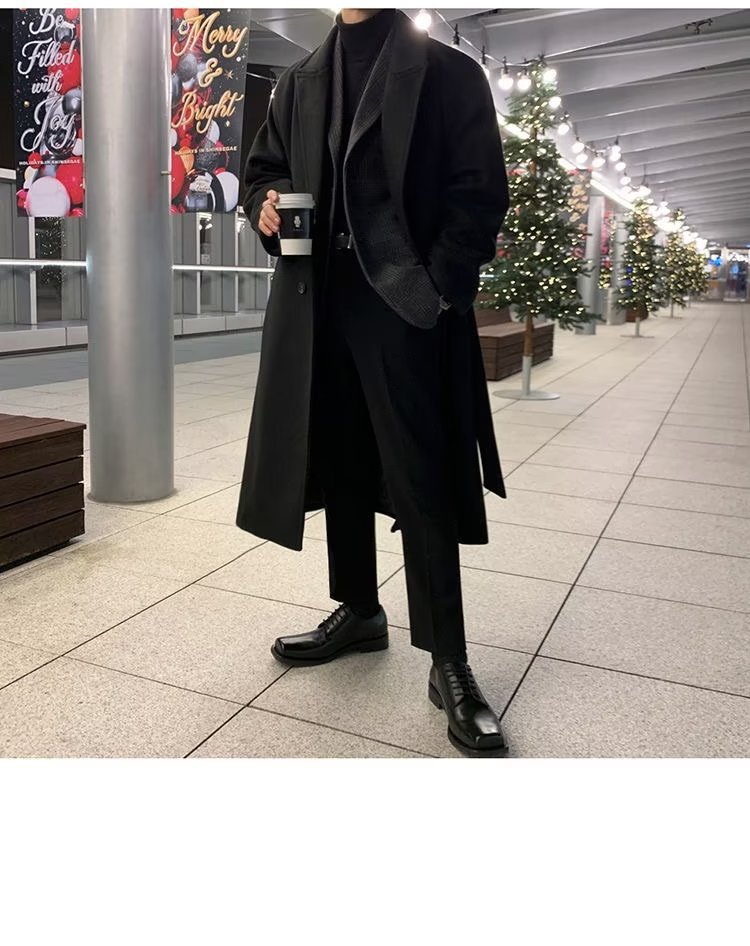 가을과 겨울 모직 코트 남성용 더블 레이어 트렌치 코트 중간 길이의 무릎 위 한국식 하이 엔드 캐시미어 모직 코트 트렌디스토어 가기