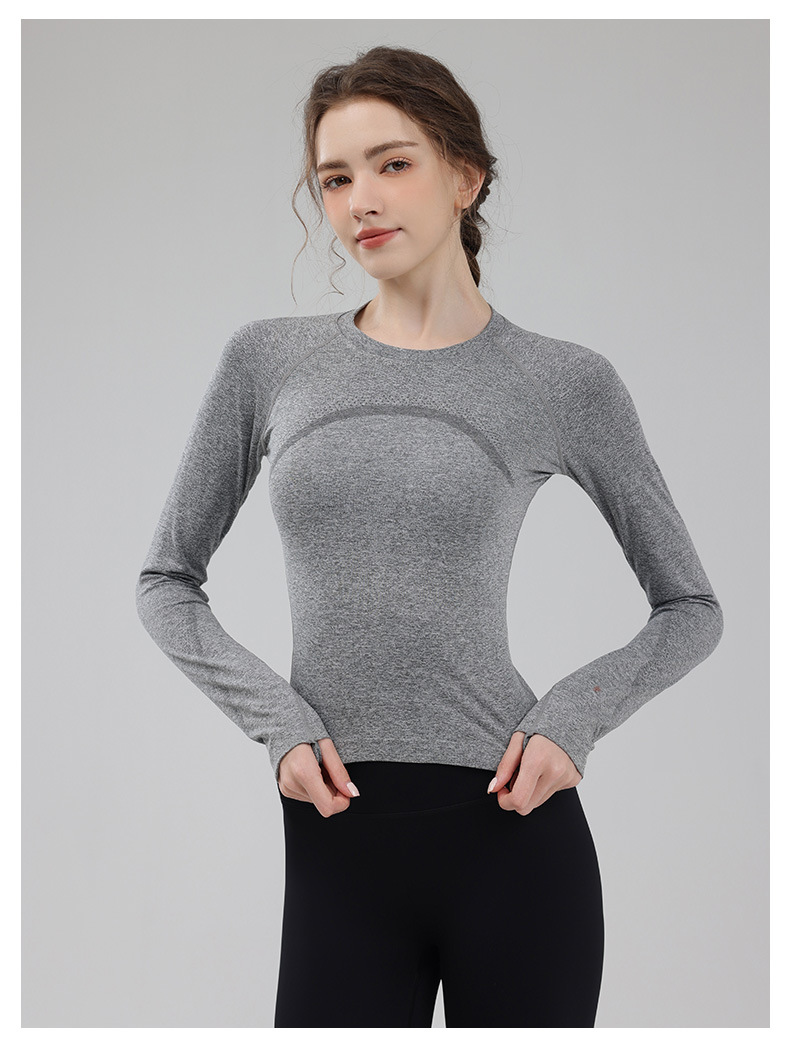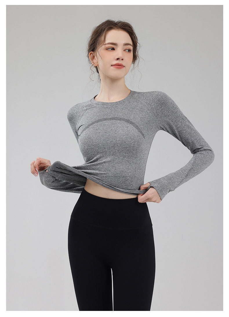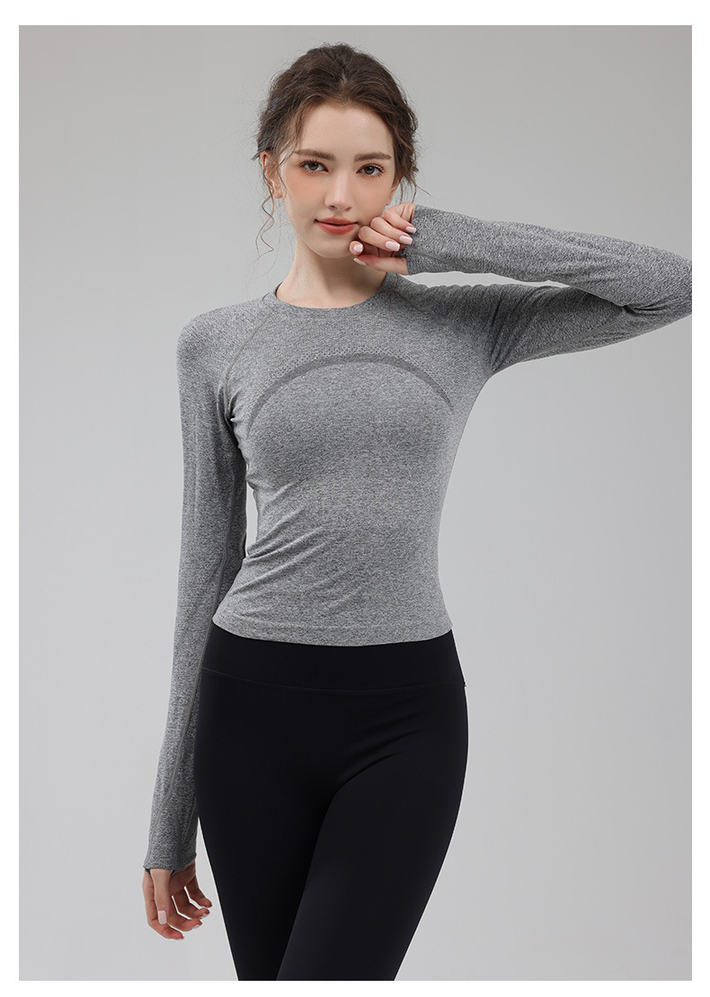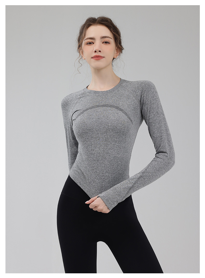 요가 의류 여성 스포츠 긴 소매 가을과 겨울 둥근 목 빠른 건조 달리기 훈련 피트니스 탑 승마 요가 의류 티셔츠