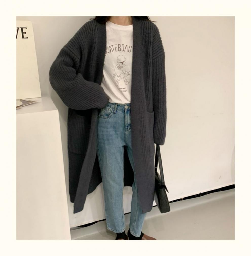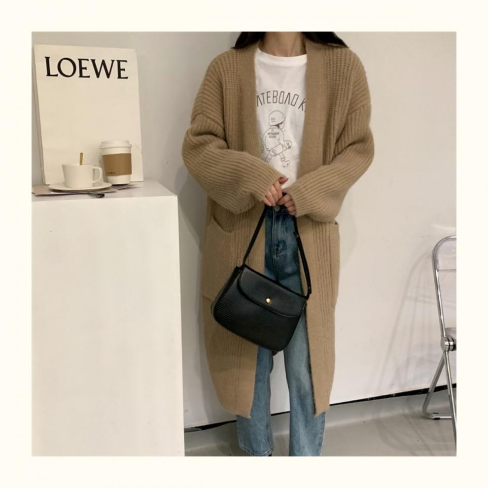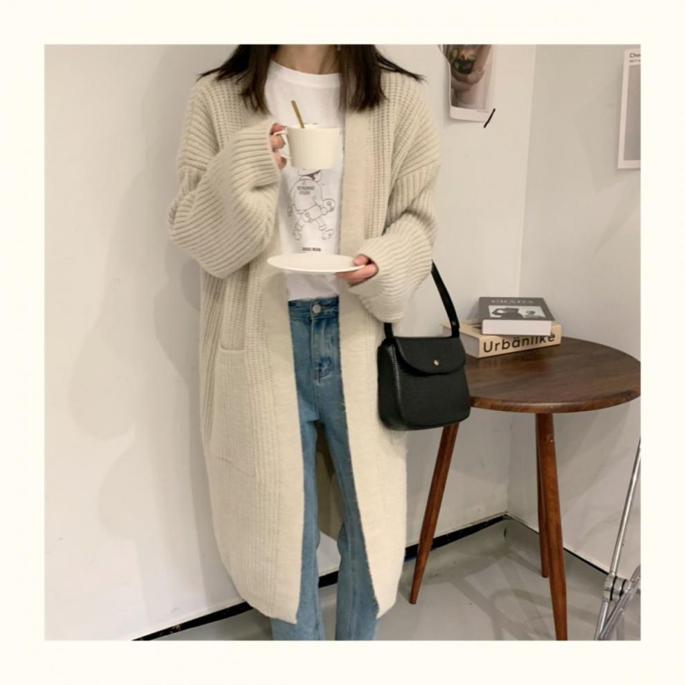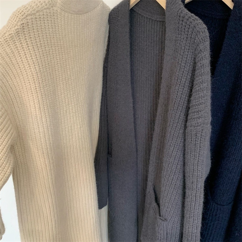 두꺼운 거친 양모 중간 길이 니트 카디건 여자 2024 한국 스타일 게으른 스타일 큰 포켓 느슨한 올 매치 재킷스토어 가기