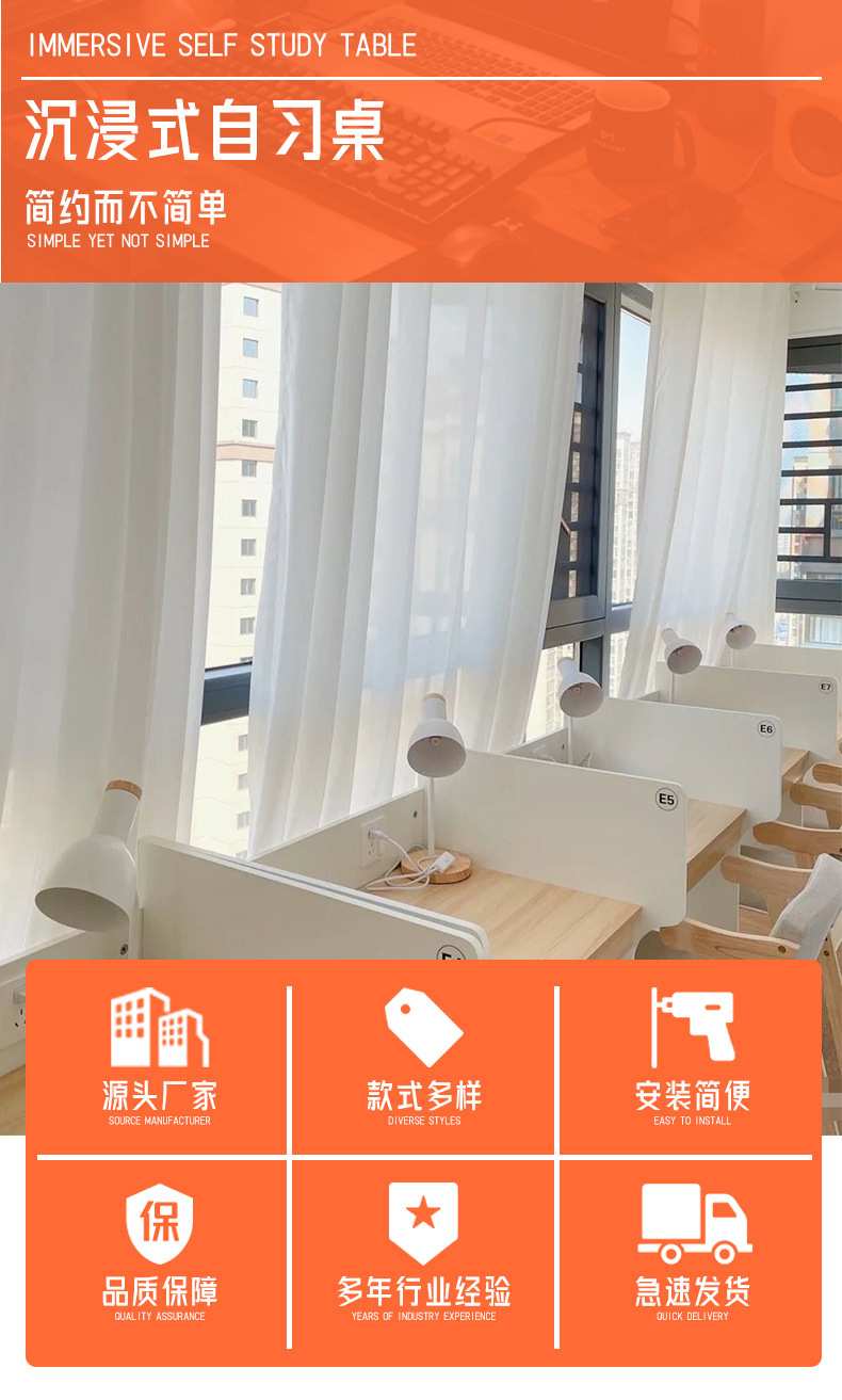 沉浸式培训机构大学生考研自习桌隔断书桌付费共享课外培训辅导桌
