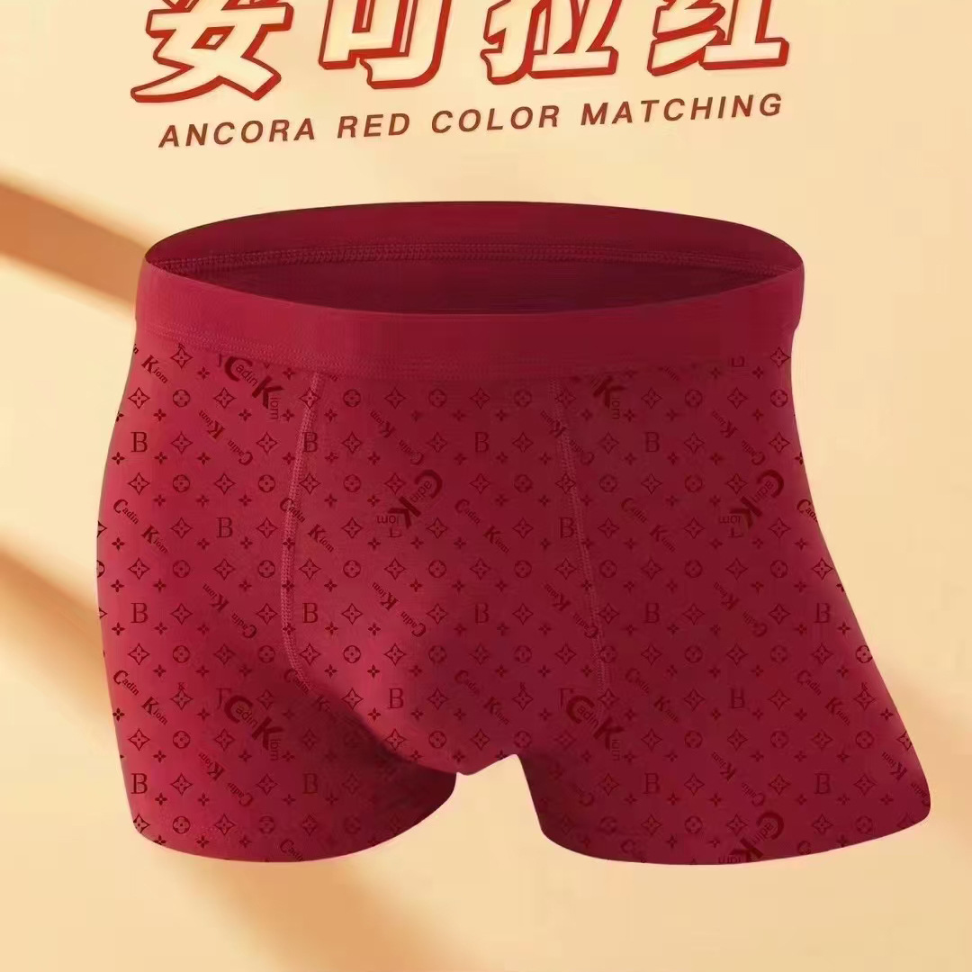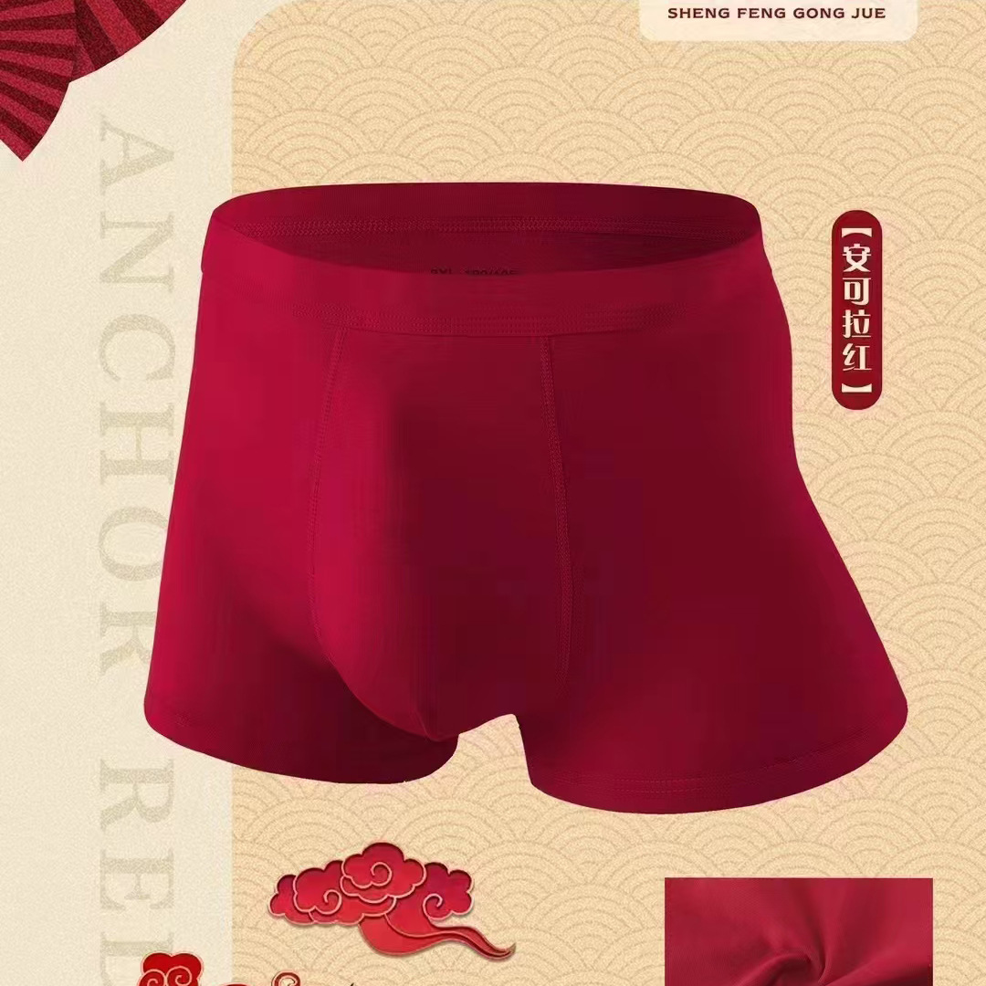 2025 Ankora Red Benmingnian Big Red Men's Pure Cotton Boxer Briefs Modal Boxer 버건디
