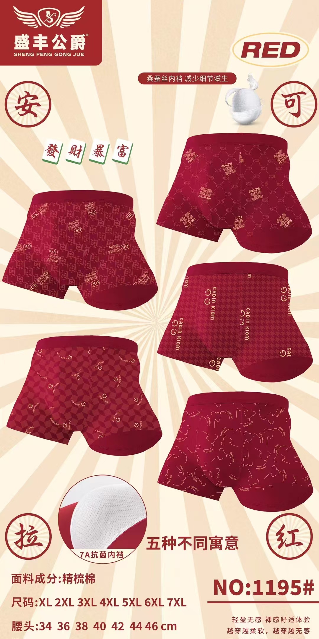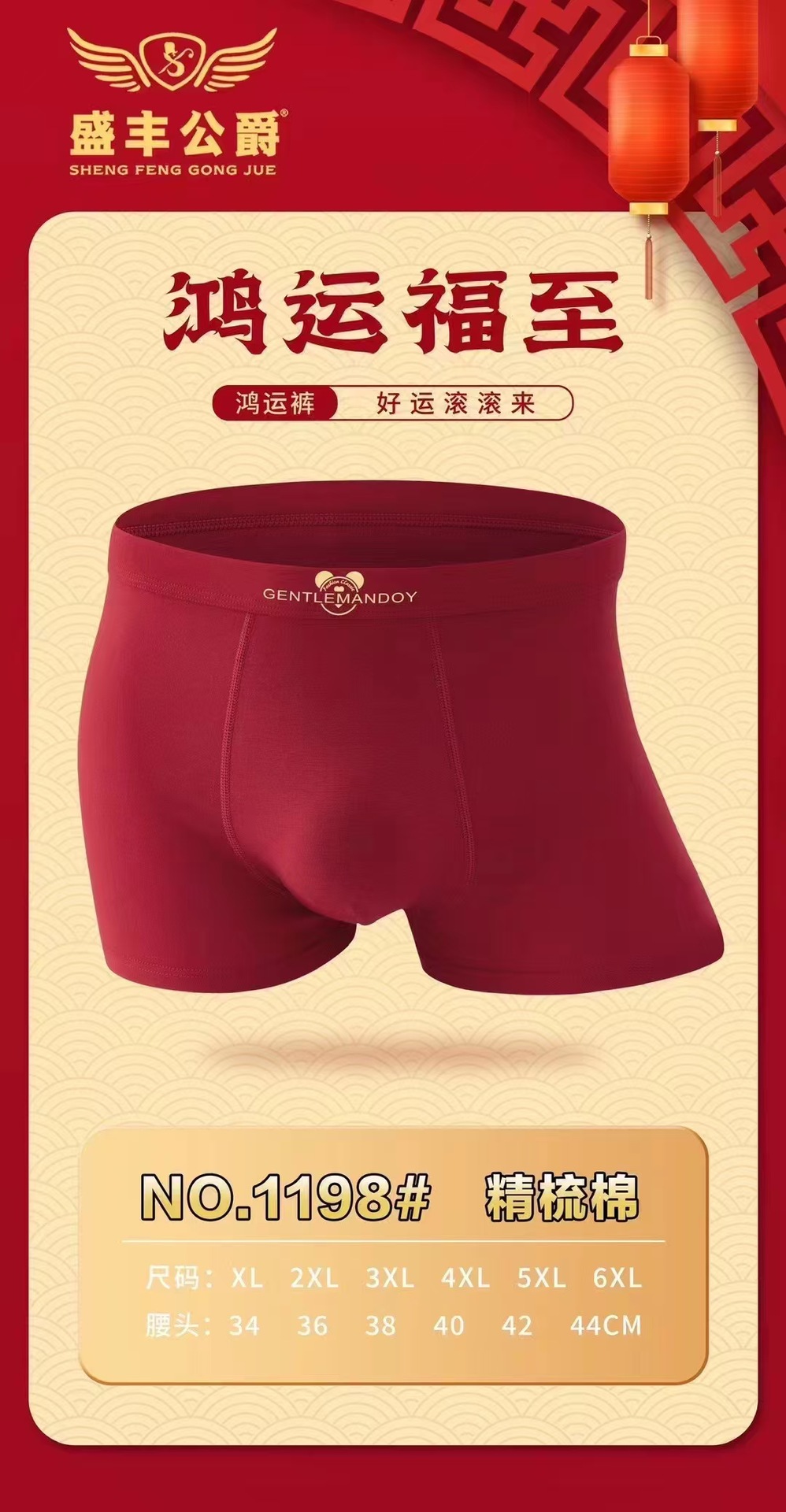 2025 Ankora Red Benmingnian Big Red Men's Pure Cotton Boxer Briefs Modal Boxer 버건디스토어 가기