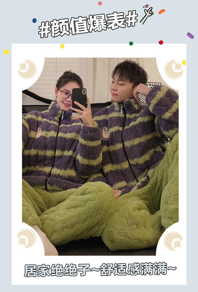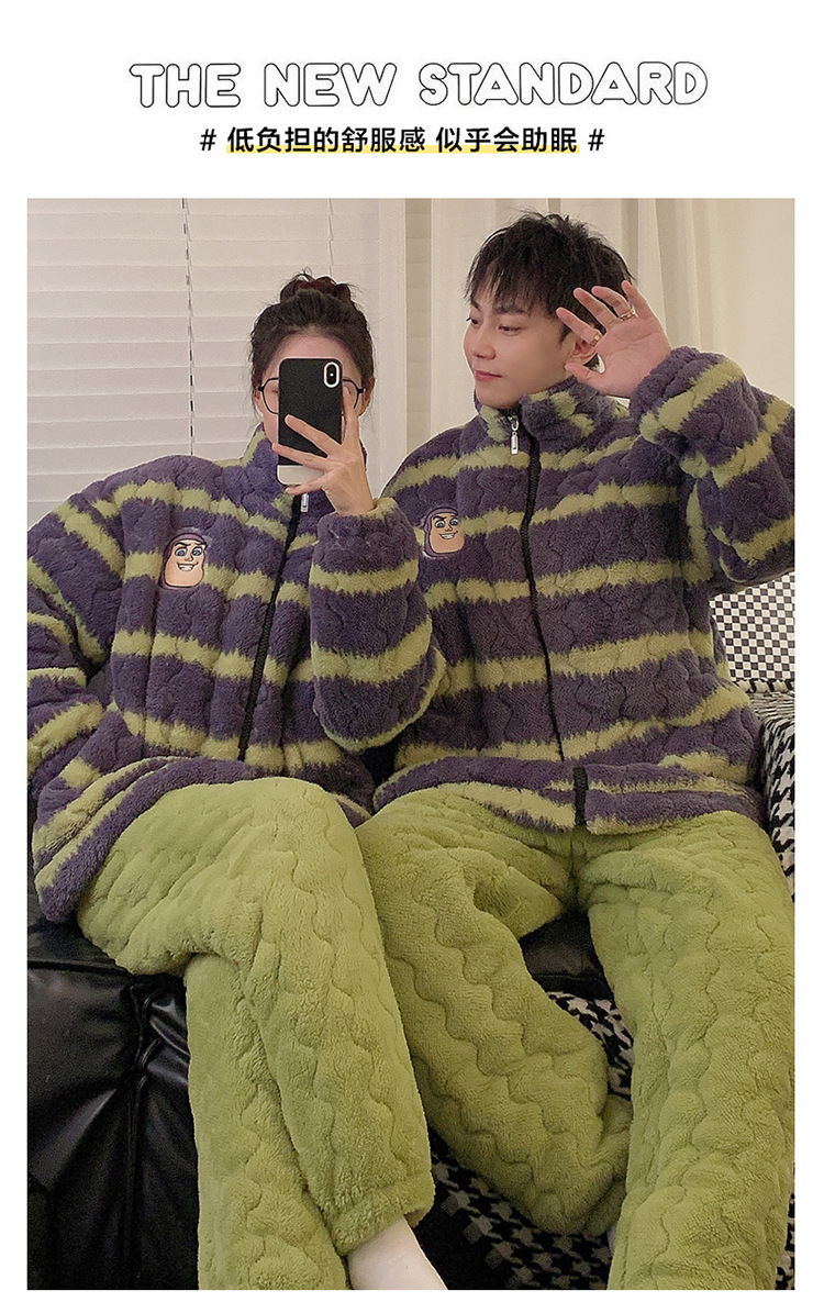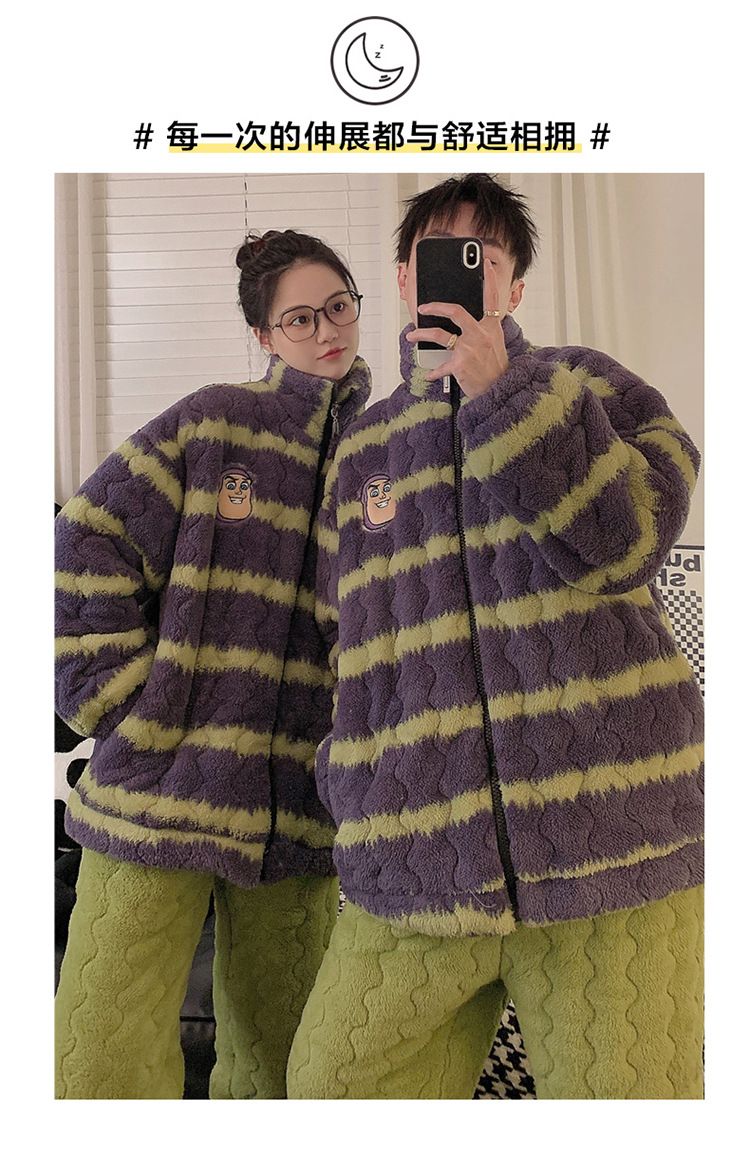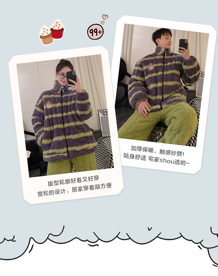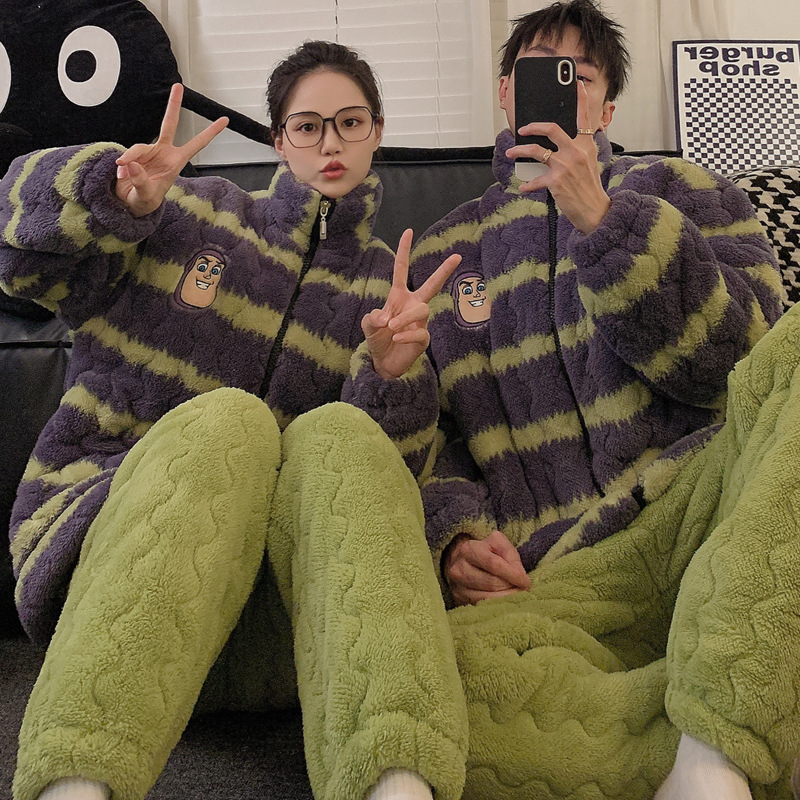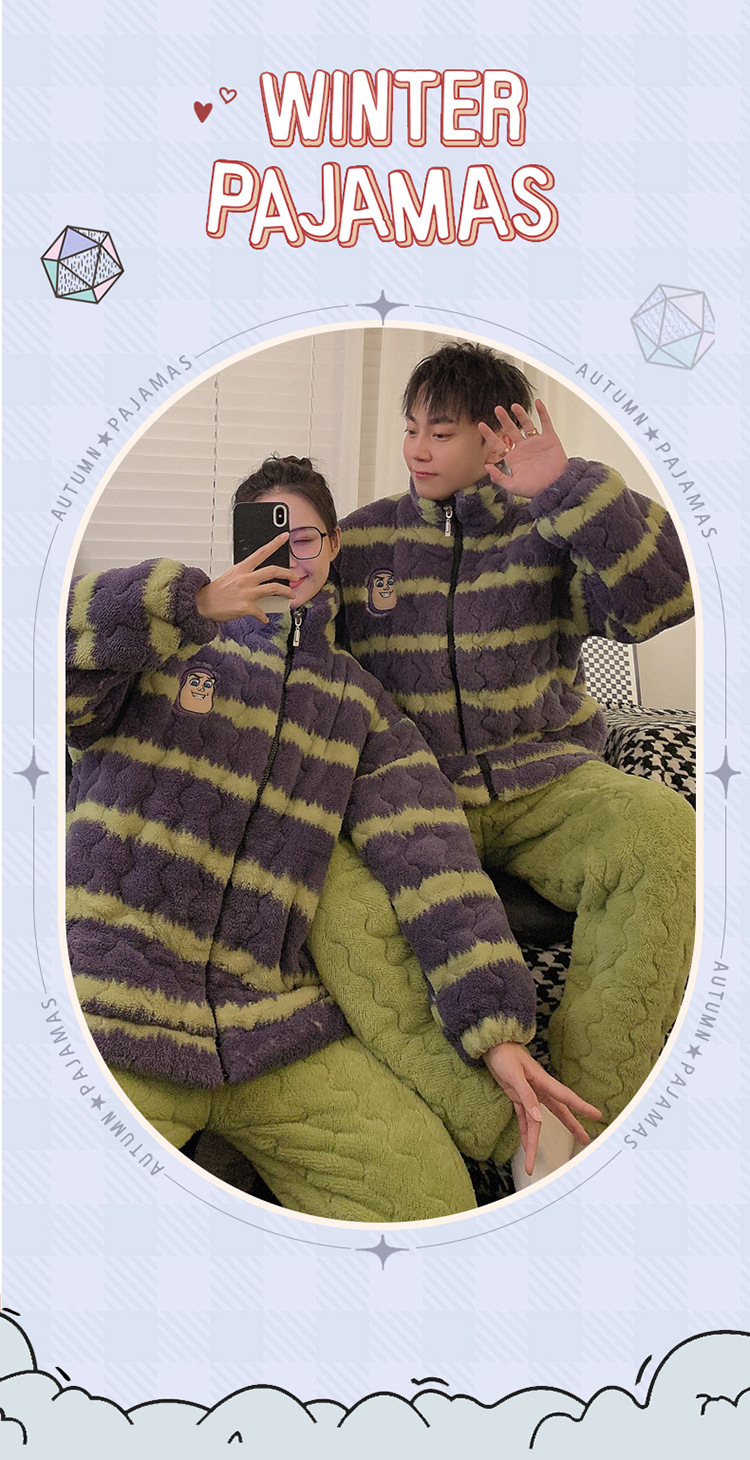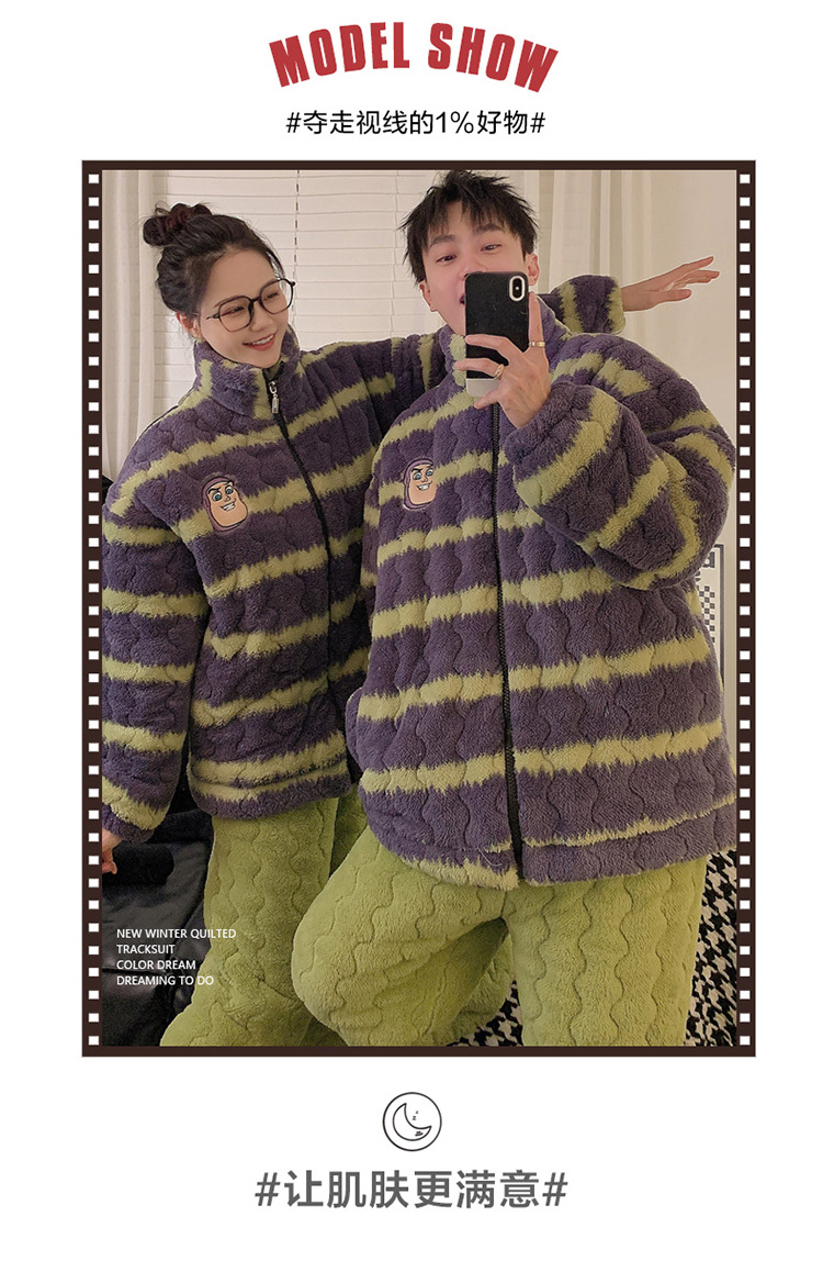 2024 새로운 한국 스타일 봉제 3 층 퀼트 파자마 남녀 커플 두꺼운 기모 뷰트 라이트 이어 홈 옷스토어 가기