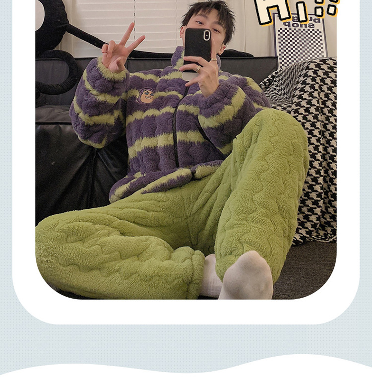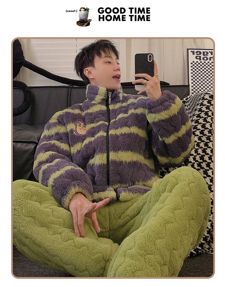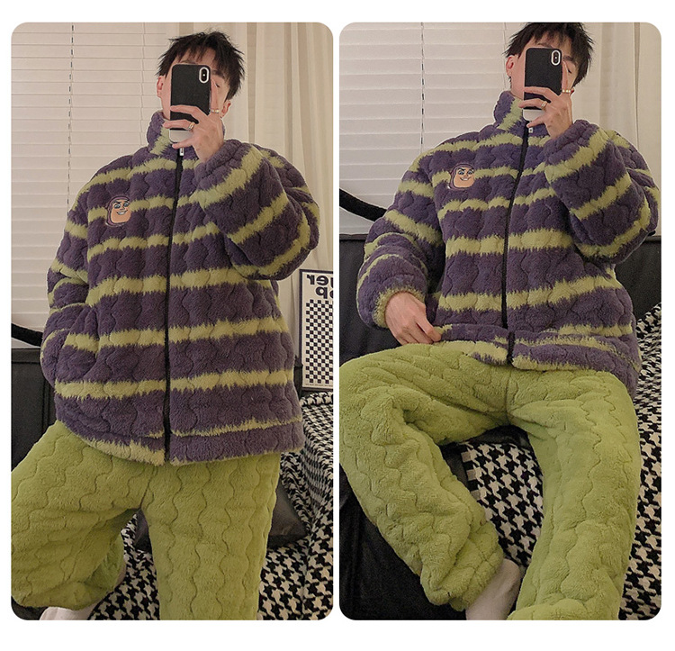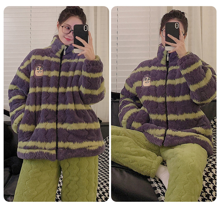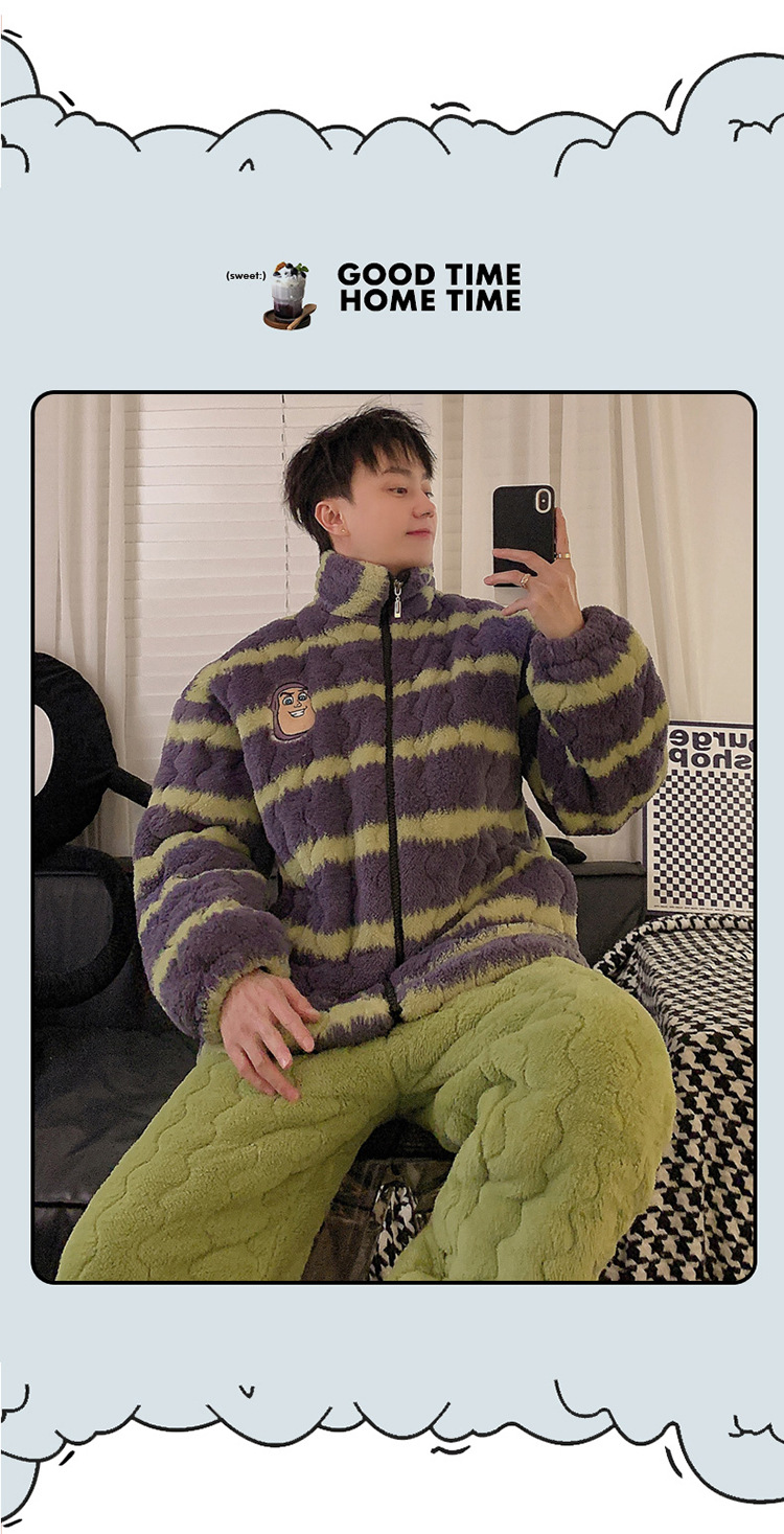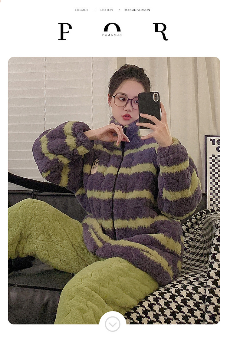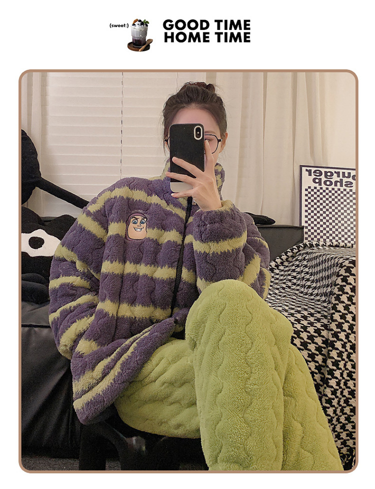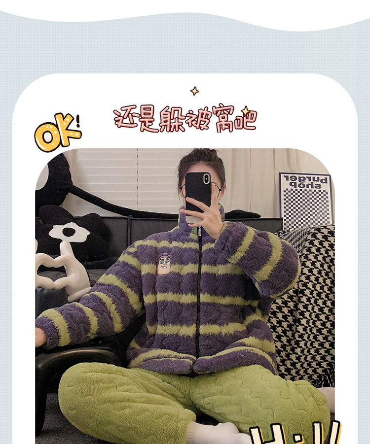 2024 새로운 한국 스타일 봉제 3 층 퀼트 파자마 남녀 커플 두꺼운 기모 뷰트 라이트 이어 홈 옷스토어 가기