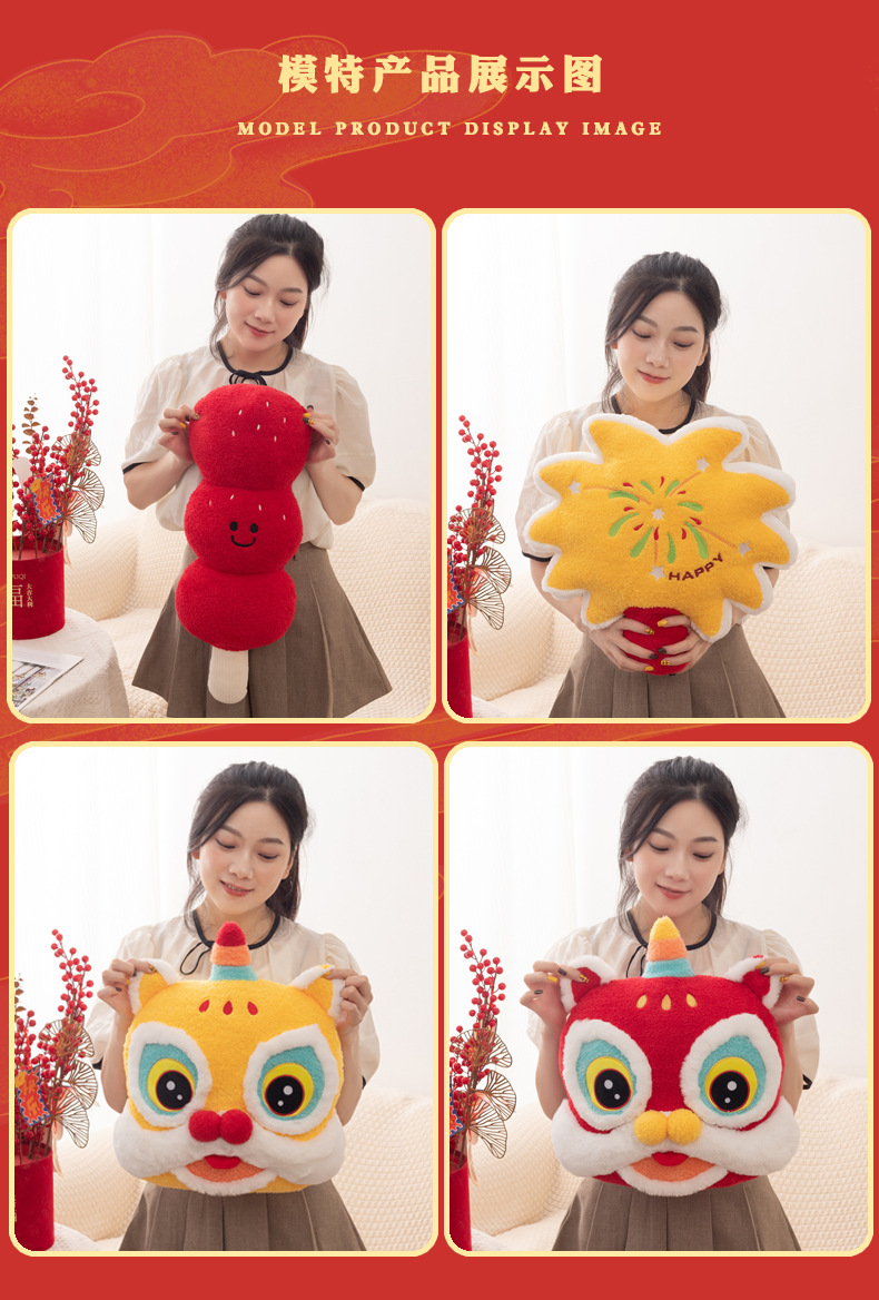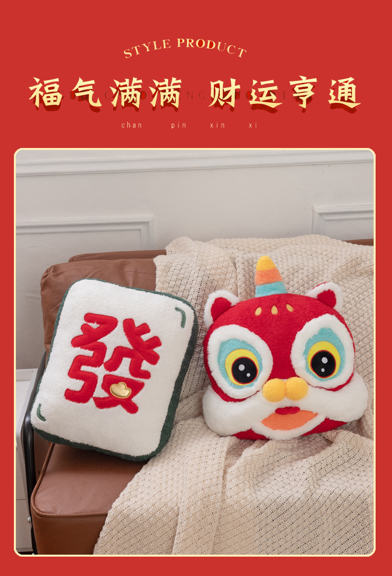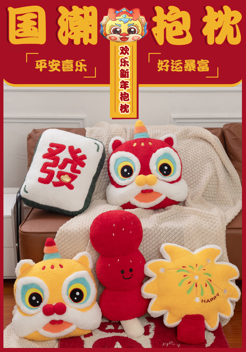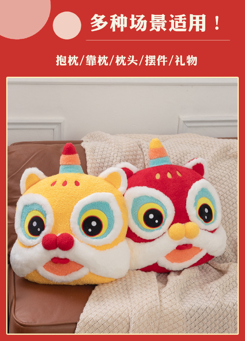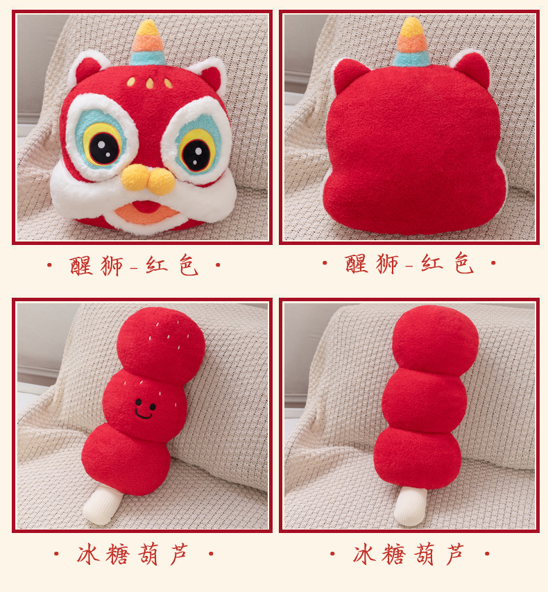 중국풍 사자 인형, 새해 행운을 기원하는 거실 베개 인형, 빨간색 축제 결혼 베개, 설탕에 절인 과일 인형스토어 가기