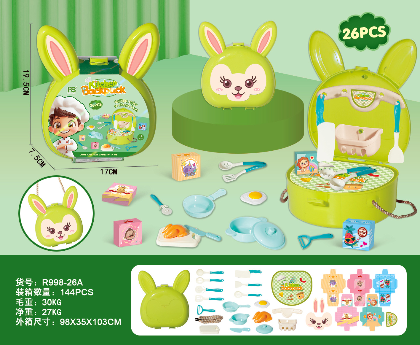 • 녹색 토끼 귀 주방 장난감 보관 가방 세트