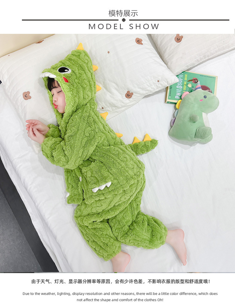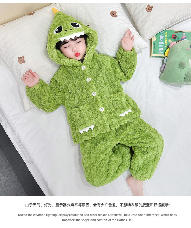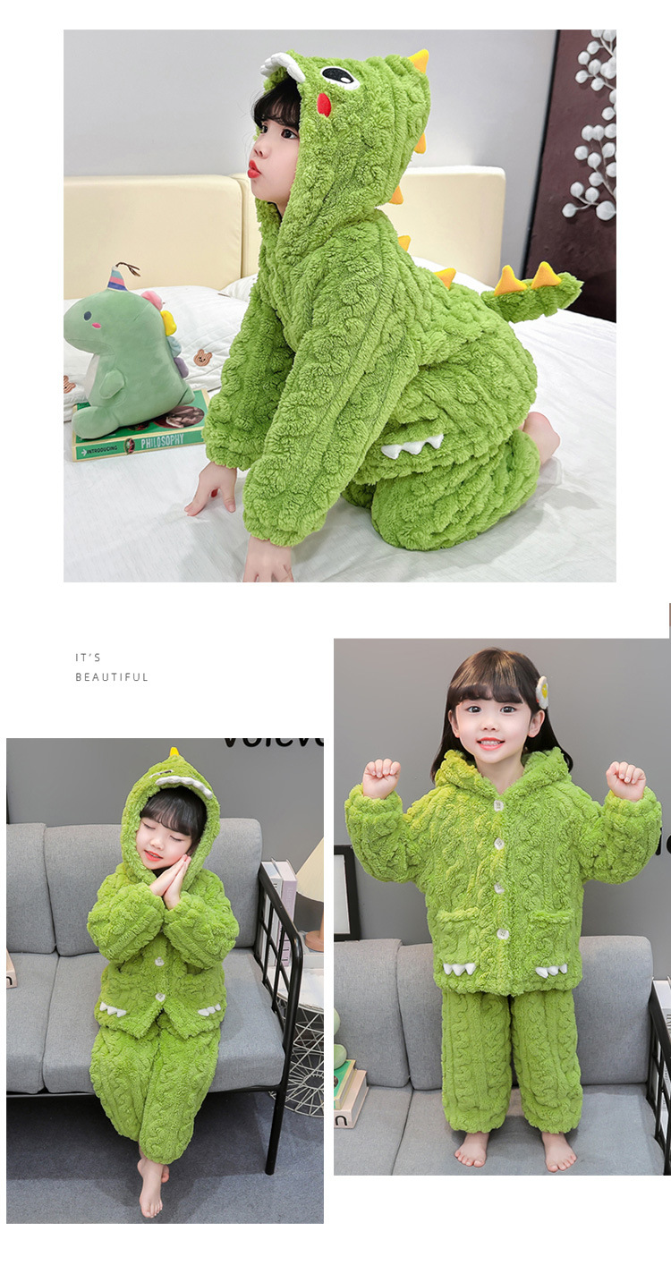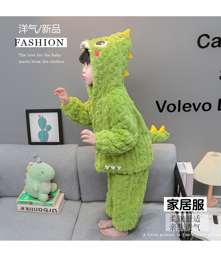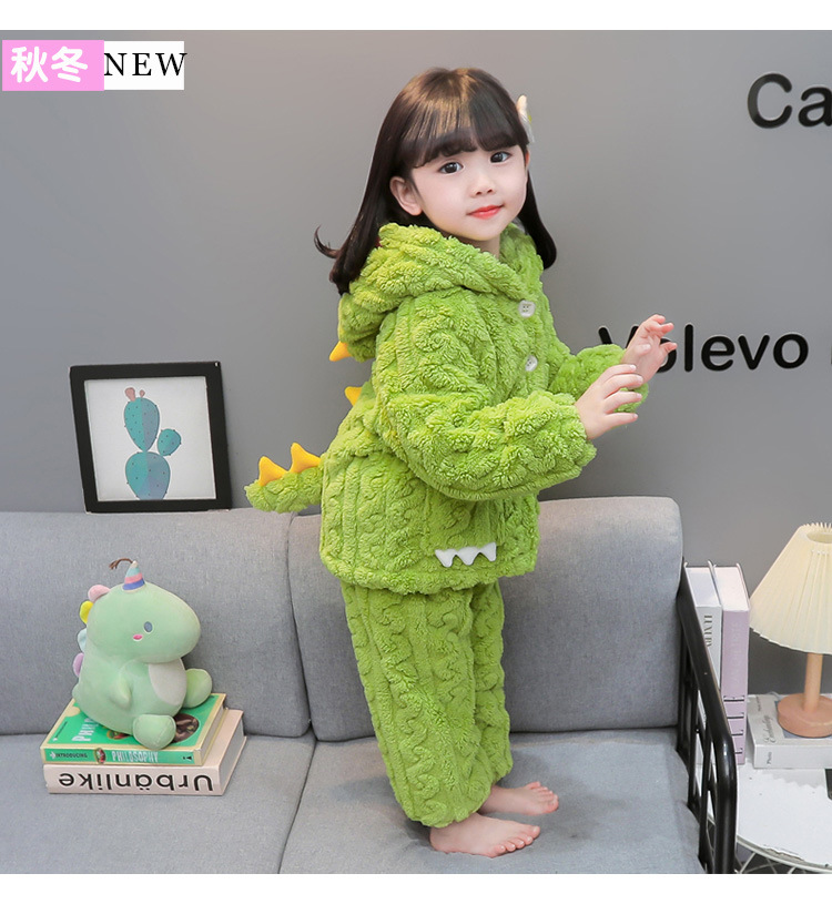 소녀 플란넬 만화 공룡 잠옷 세트 2024 새로운 아기 소녀 가을과 겨울 아늑한 홈 의류 패션스토어 가기
