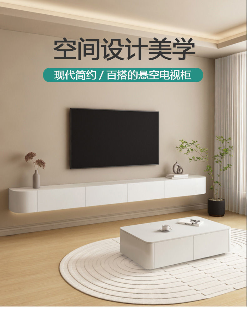 단단한 나무 교수형 TV 내각 거실 벽걸이 크림 스타일 TV 캐비닛 저장 캐비닛 록 보드 TV 캐비닛