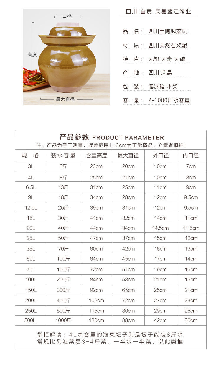 사천 피클 항아리 두껍게 된 전통 Sauerkraut 항아리 절개 지구 도자기 스몰 사이즈 가정용 도자기 구식 피클 미핑 런스토어 가기