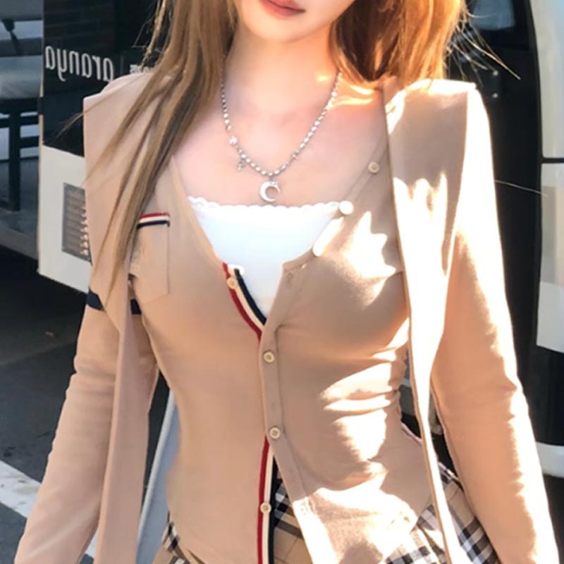 2024 서울 스토우 딸 니트 카디건 스웨터 여성의 내부 대비 컬러 줄무늬 허리 작은 샤넬 스타일 Bottoming 가을
