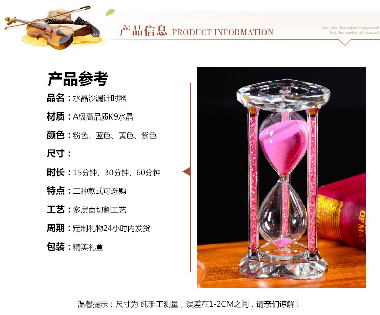 크리스탈 모래 시계 15/30/60 분 타이머 장식품 창조적 인 보내 어린이 친구 여자 친구 축제 핑 실행스토어 가기
