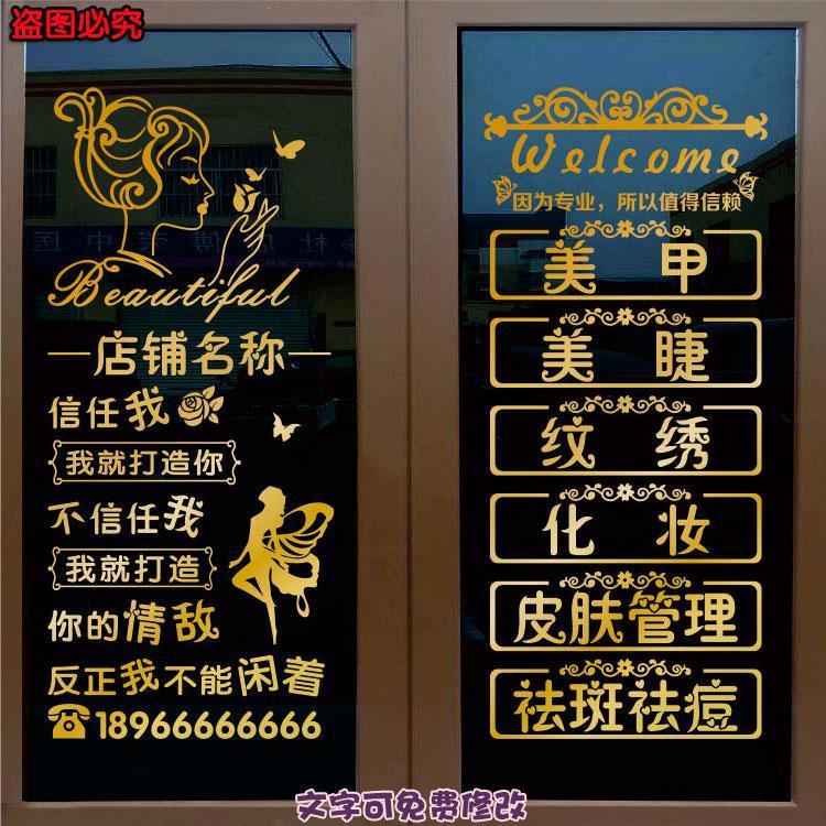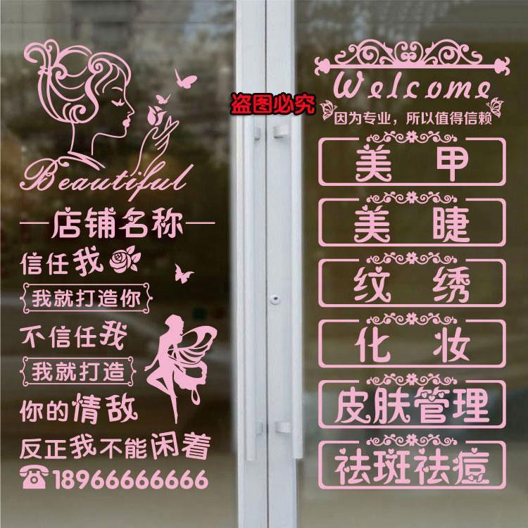 뷰티 살롱 네일 아트 샵 유리 도어 스티커 성격 창조적 인 문신 메이크업 뷰티 살롱 창 벽 스티커 광고 핑 런스토어 가기