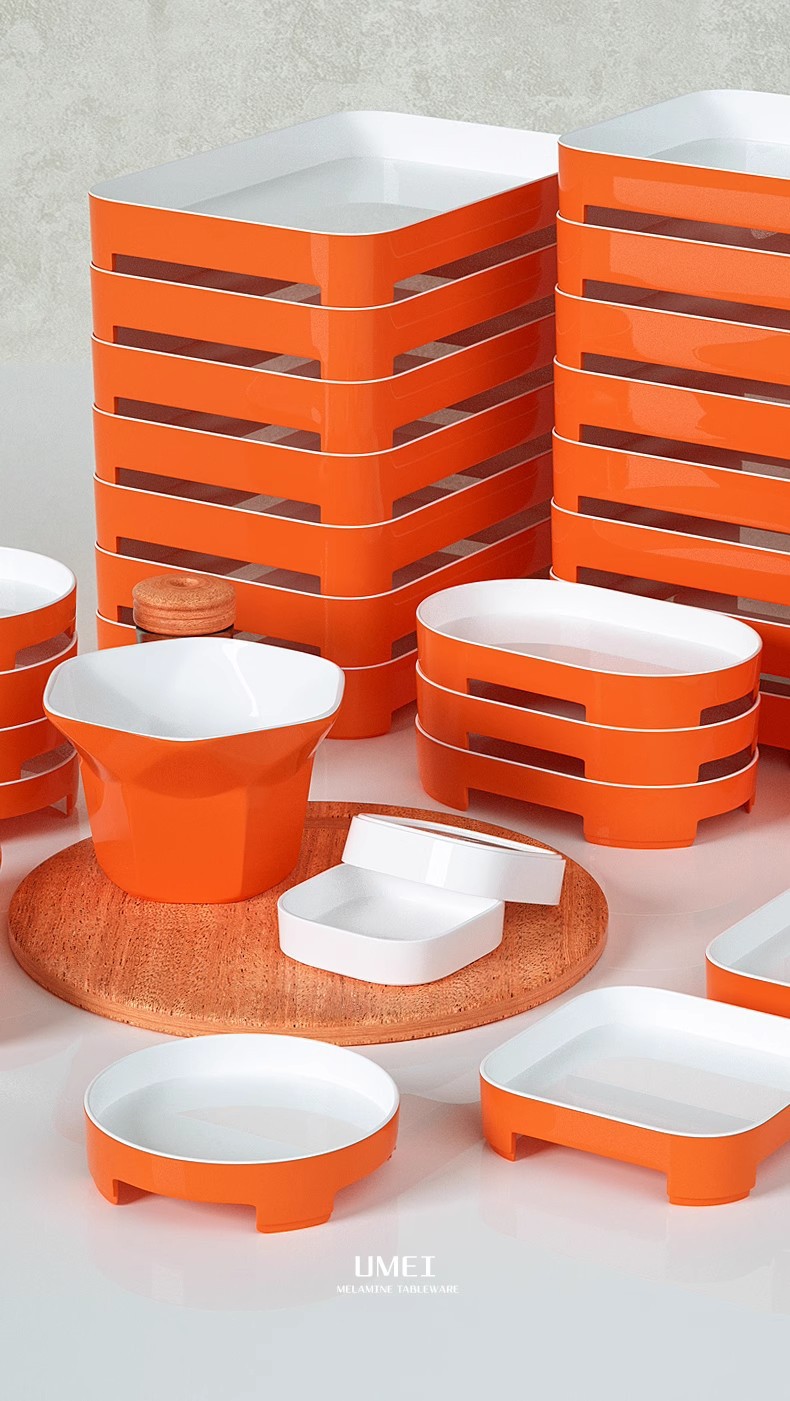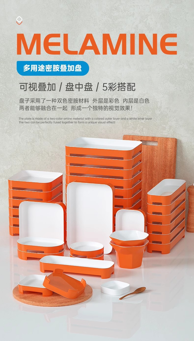 쌓을 수있는 카페테리아 바베큐 소스 플레이트로 낚시하는 접시가있는 멜라민 식기 핫팟 레스토랑 디너 플레이트