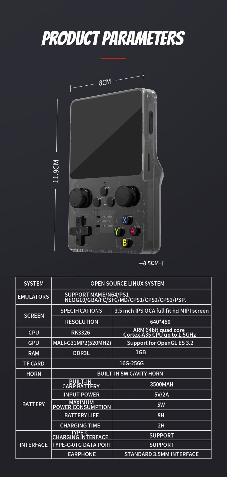 R35S 새로운 오픈 소스 핸드 헬드 게임 콘솔 레트로 GBA 아케이드 크로스 보더 클래식 FC 아케이드 휴대용 PSP 듀얼 시스템