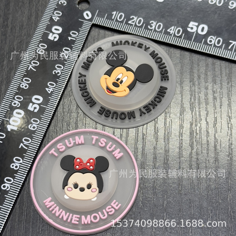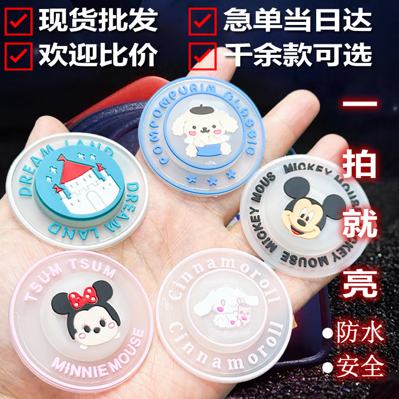 공장 도매 수하물 액세서리 캔디 컬러 만화 미키 마우스 드롭 플라스틱 고무 라운드 창조적 인 깜박이는 램프 쉘 사인