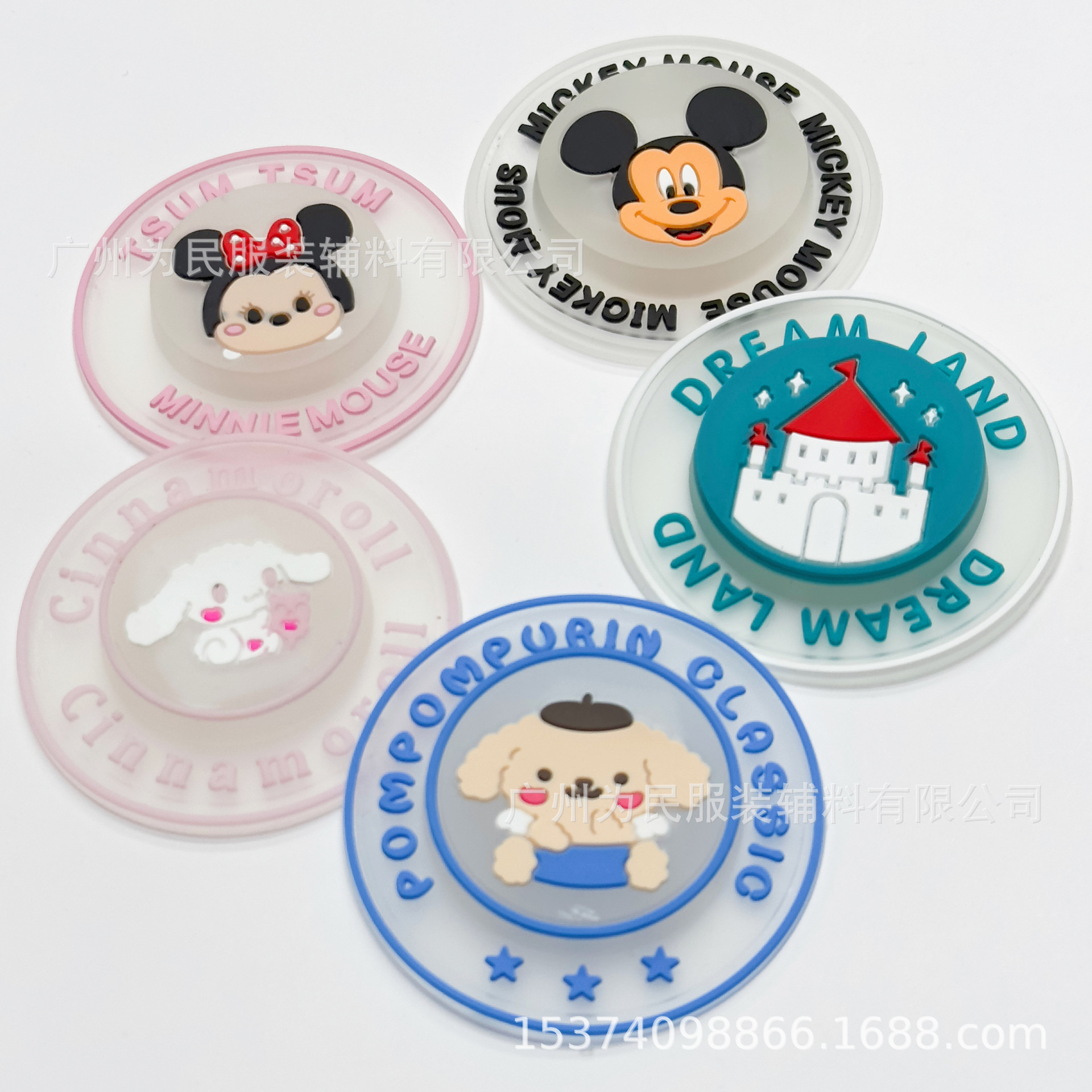 캔디 컬러의 여아용 만화 미키 마우스 원터치 발광 플라스틱 라벨 고무 스탬프 원형 배지 의류 패치 부자재스토어 가기