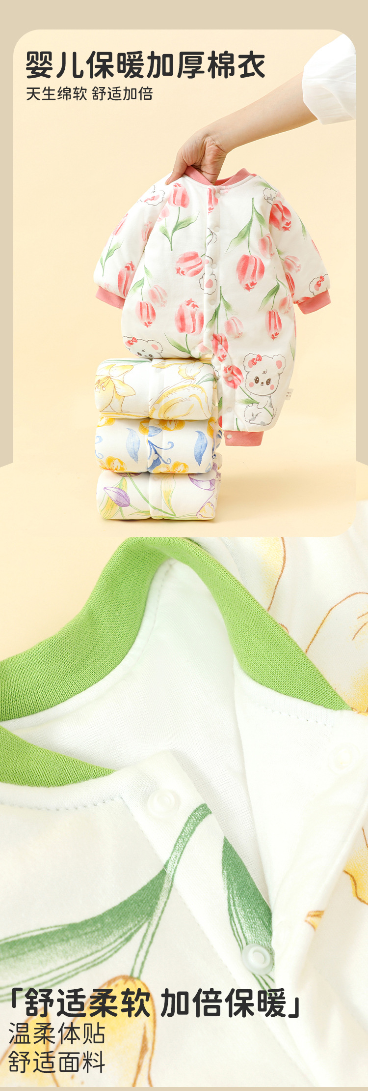 가을과 겨울 3 층 얇은면 따뜻한 옷 남녀 아기면 패딩 의류 아기 점프 수트 만화 꽃면 패딩 재킷스토어 가기