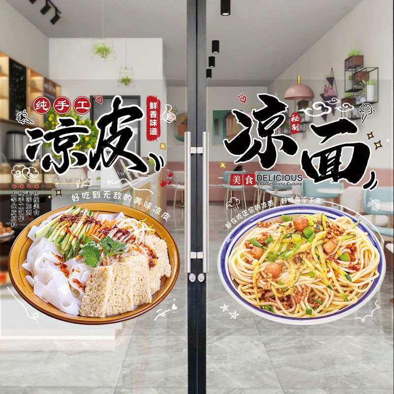 Liangpi Liangmou 산시 스낵 바 자동차 유리 스티커 Roujiamo 국수 가게 창 배경 벽 장식 광고 Ping Run