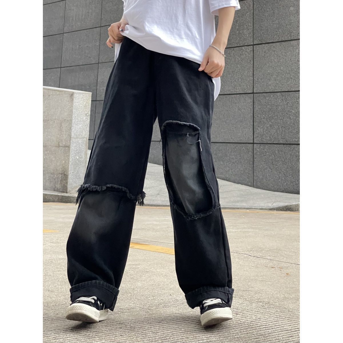 하이 스트리트 블랙 팬츠 여자 Ins 트렌디 새로운 유럽과 미국의 Hiphop 힙합 루즈 스트레이트 바이브 홀 브레이킹 니우 핑 런