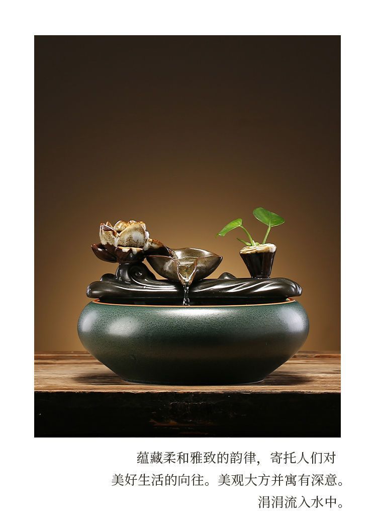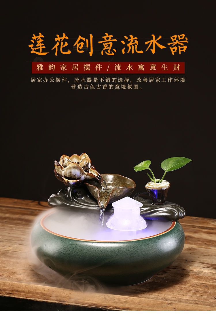 창조적 인 거실 작은 미니 흐르는 물 장식품 세라믹 순환 물 사무실 데스크탑 가습기 설치 핑 런
