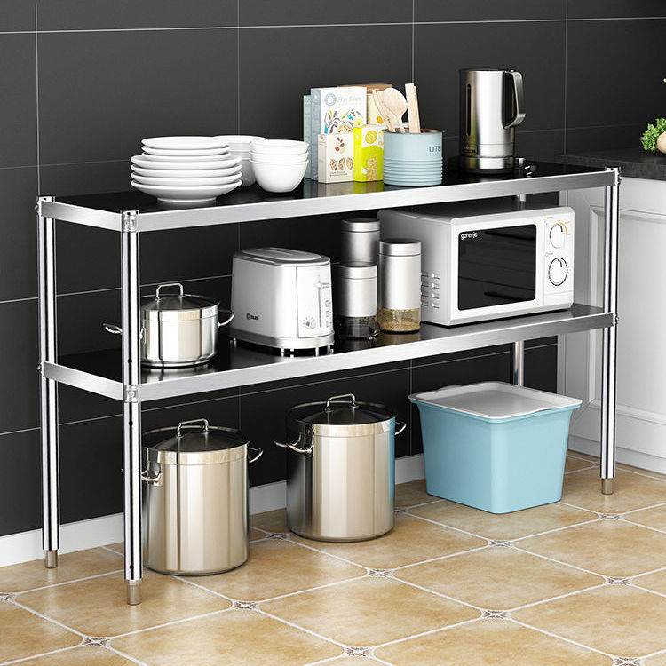 스테인레스 스틸 주방 보관 랙 바닥 다층 마이크로파 스토리지 랙 2 층 스토브 스토리지 포트 랙 요리 핑 런스토어 가기