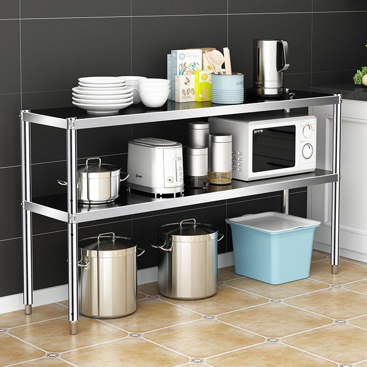 스테인레스 스틸 주방 보관 랙 바닥 다층 마이크로파 스토리지 랙 2 층 스토브 스토리지 포트 랙 요리 핑 런