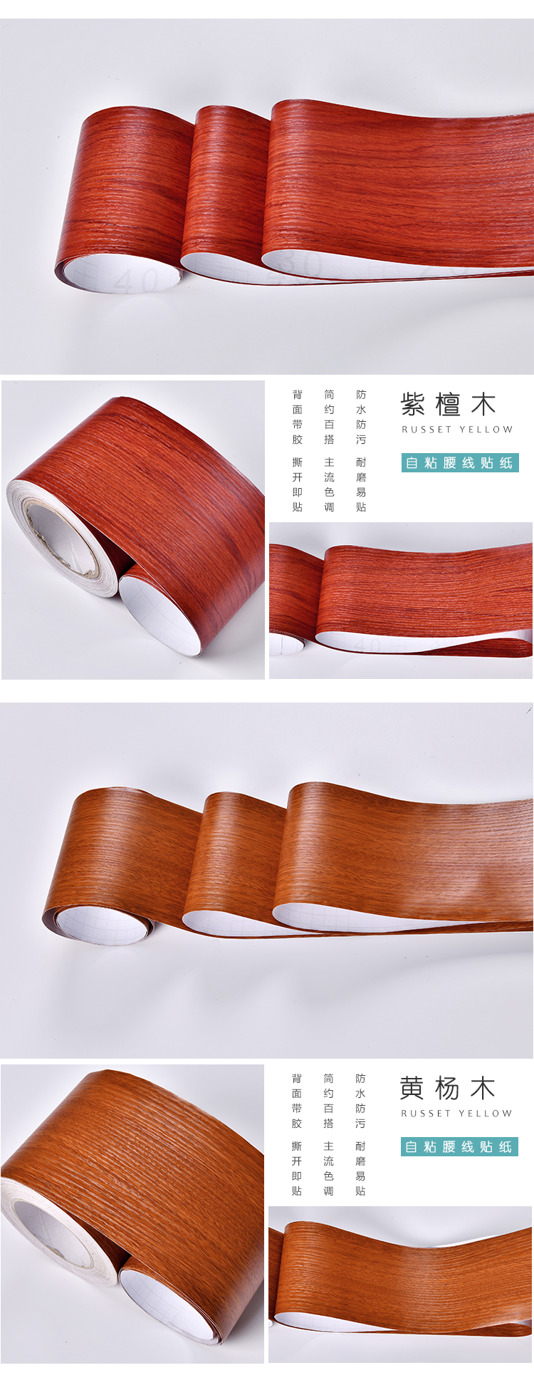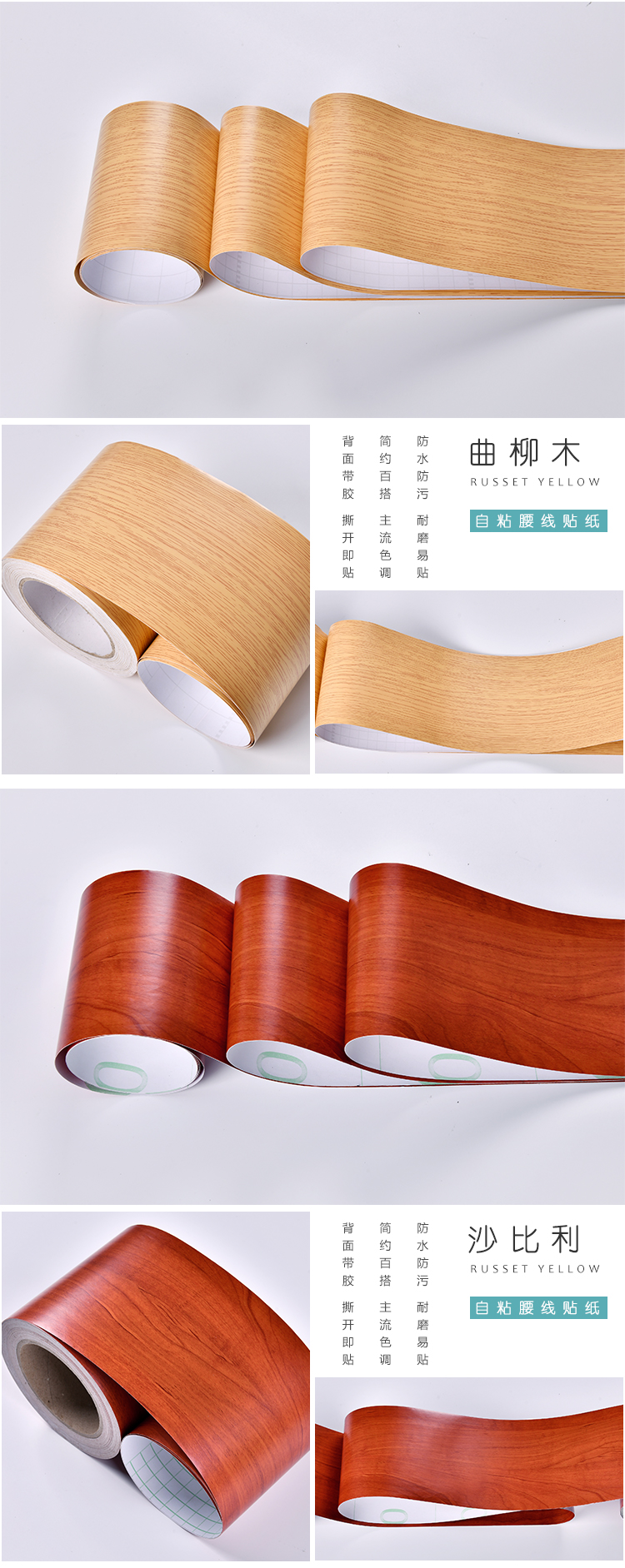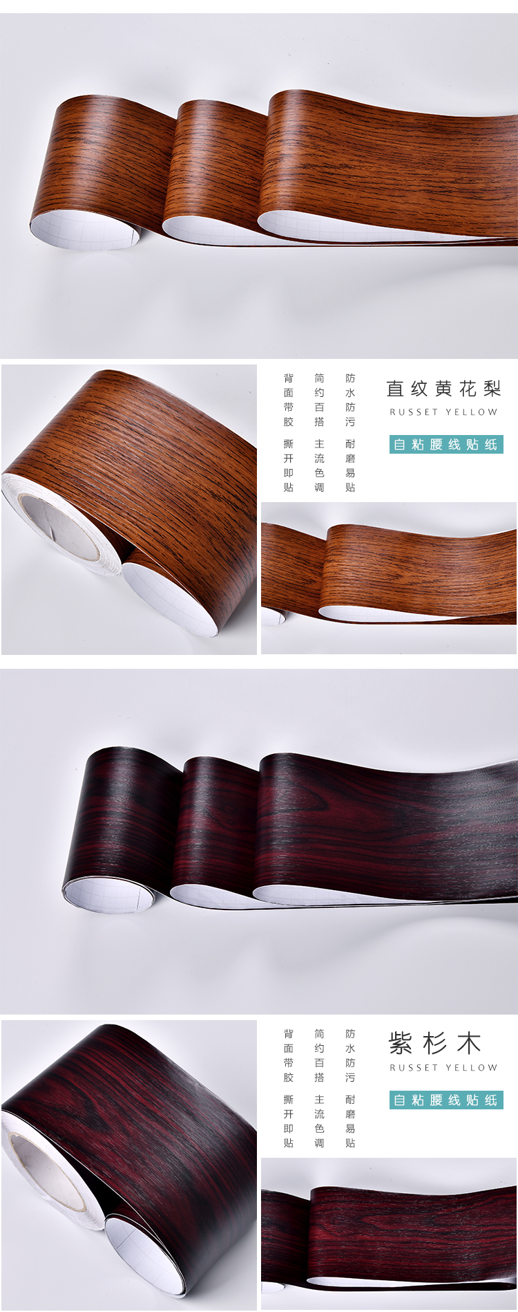 두꺼운 모조 나뭇결 스커트 벽지 자체 접착 창틀 도어 프레임 리노베이션 거실 장식 발 라인 방수 Wang Huageng