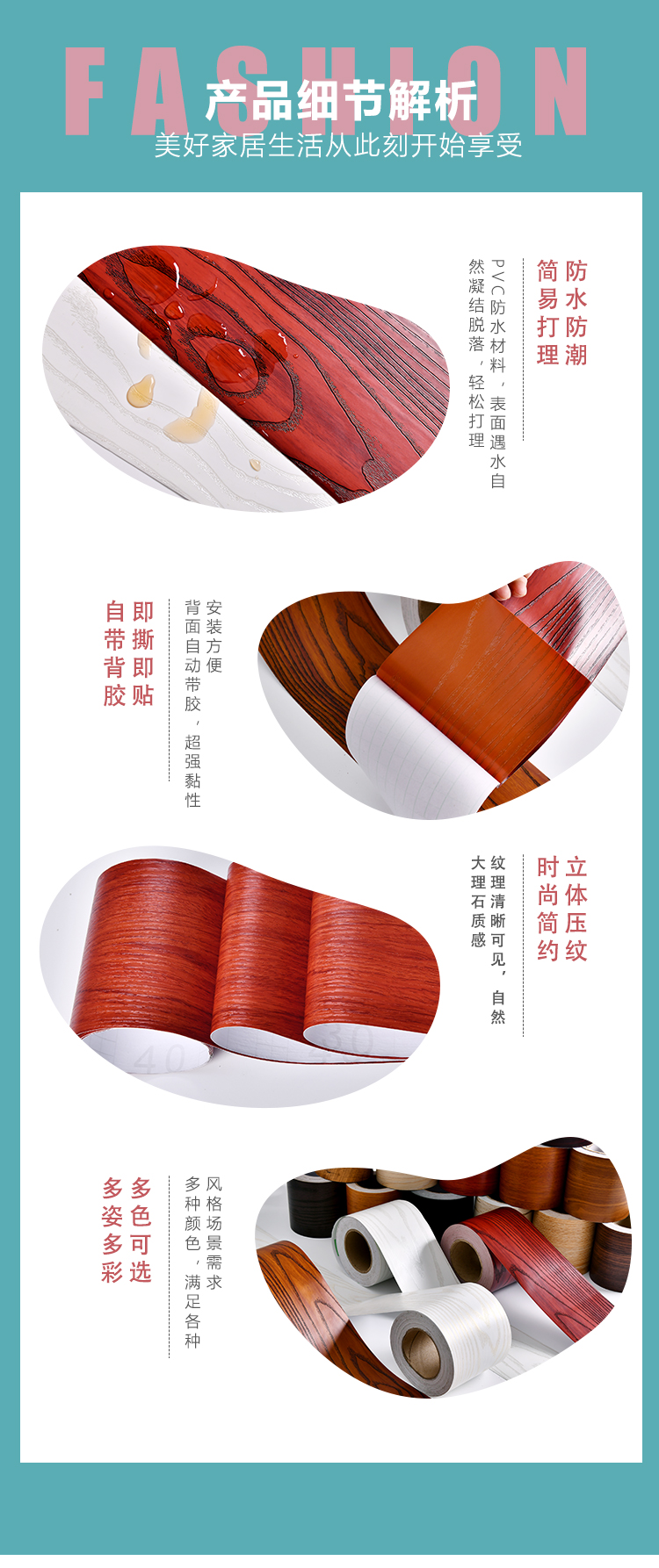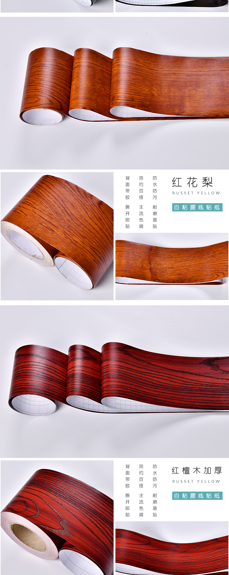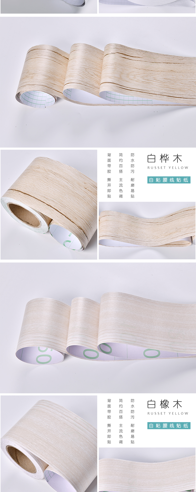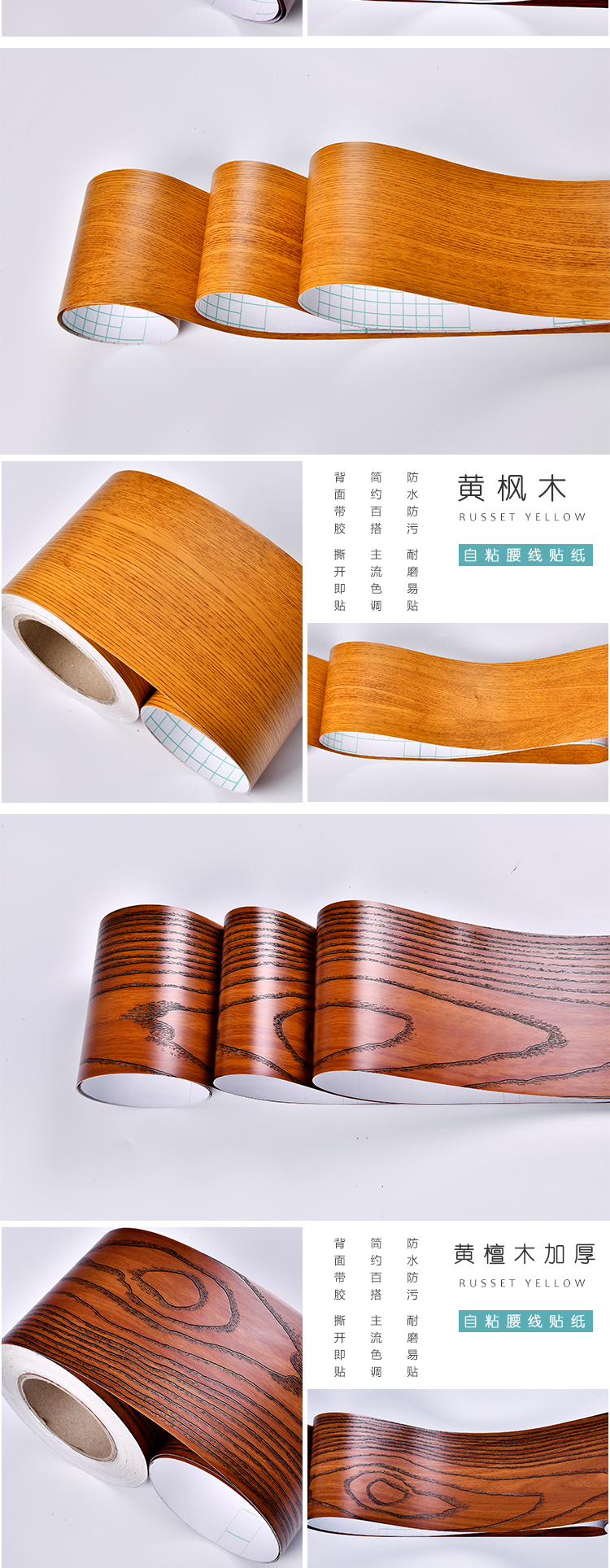 두꺼운 모조 나뭇결 스커트 벽지 자체 접착 창틀 도어 프레임 리노베이션 거실 장식 발 라인 방수 Wang Huageng