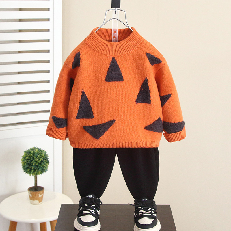 6853 소년 가을과 겨울 스웨터 2024 새로운 어린이 두꺼운 니트 스웨터 외부 착용 서양식 아기 겨울 탑스토어 가기