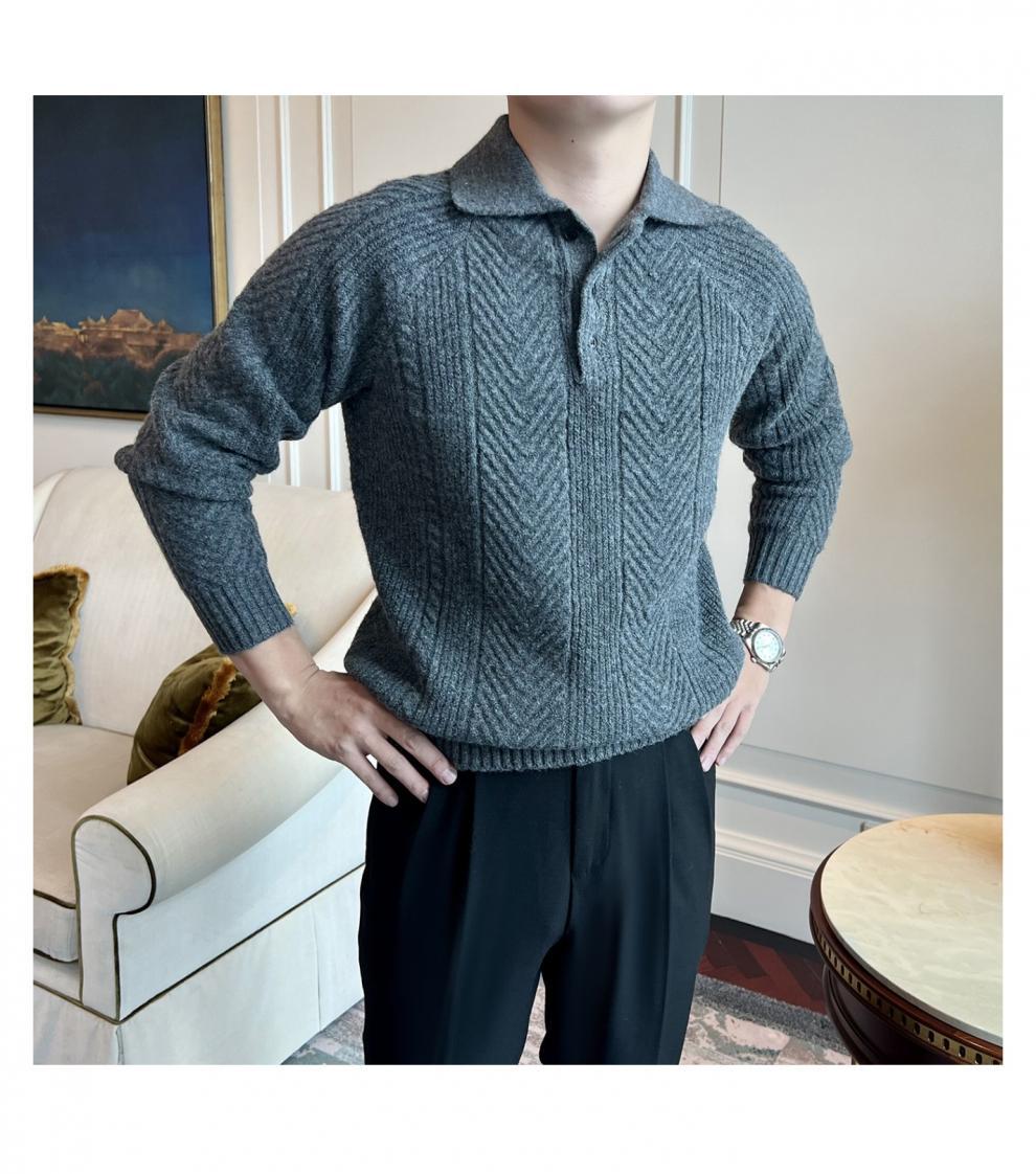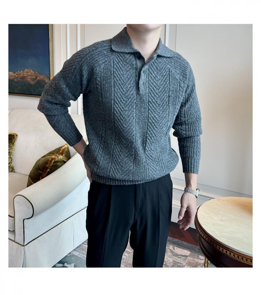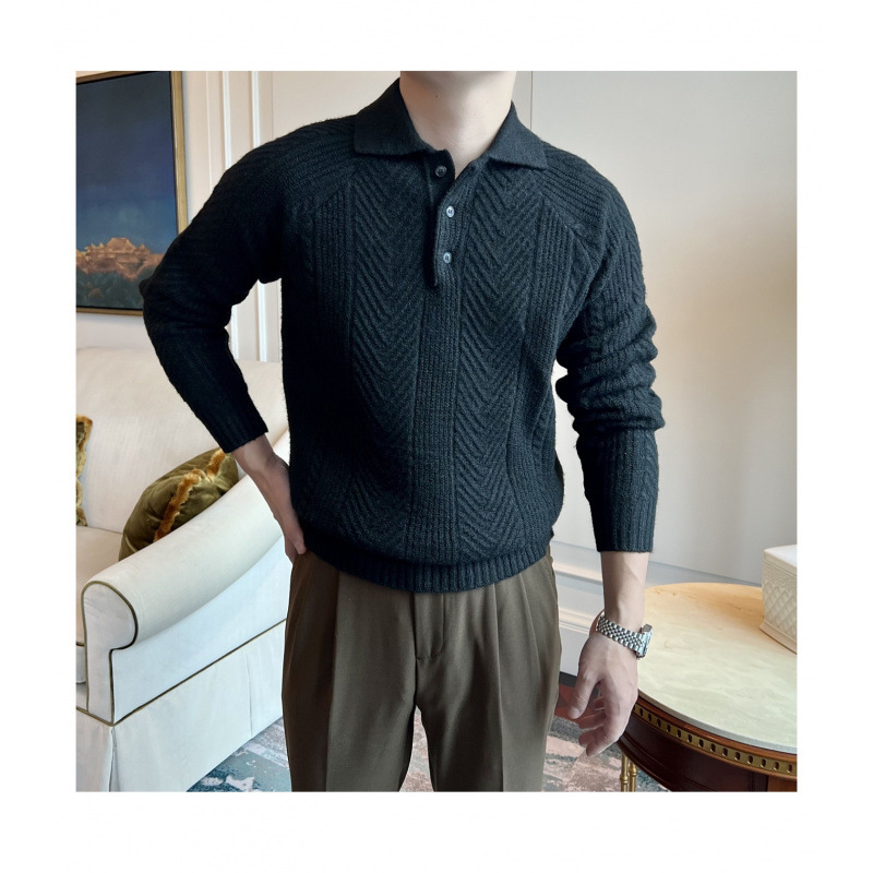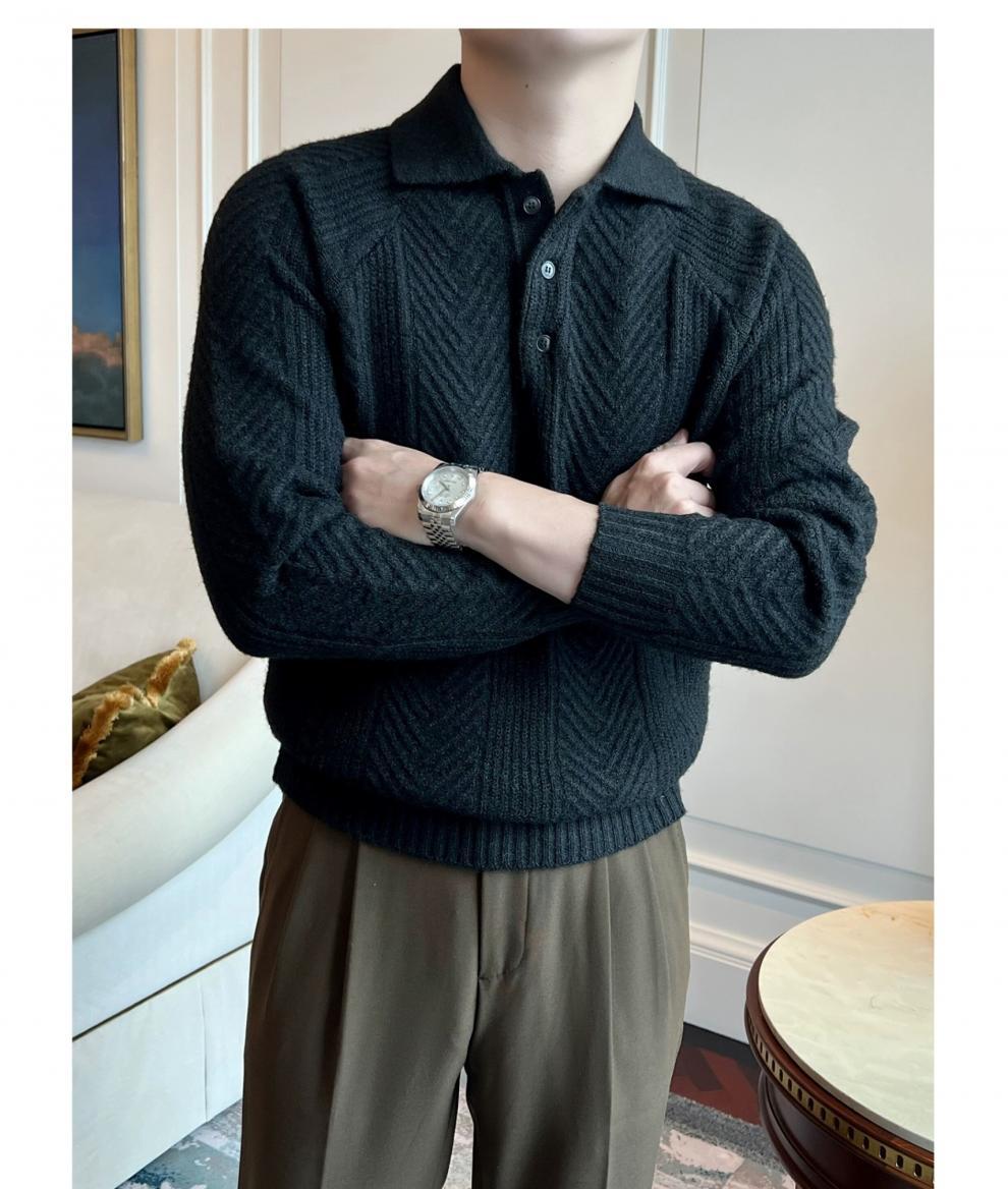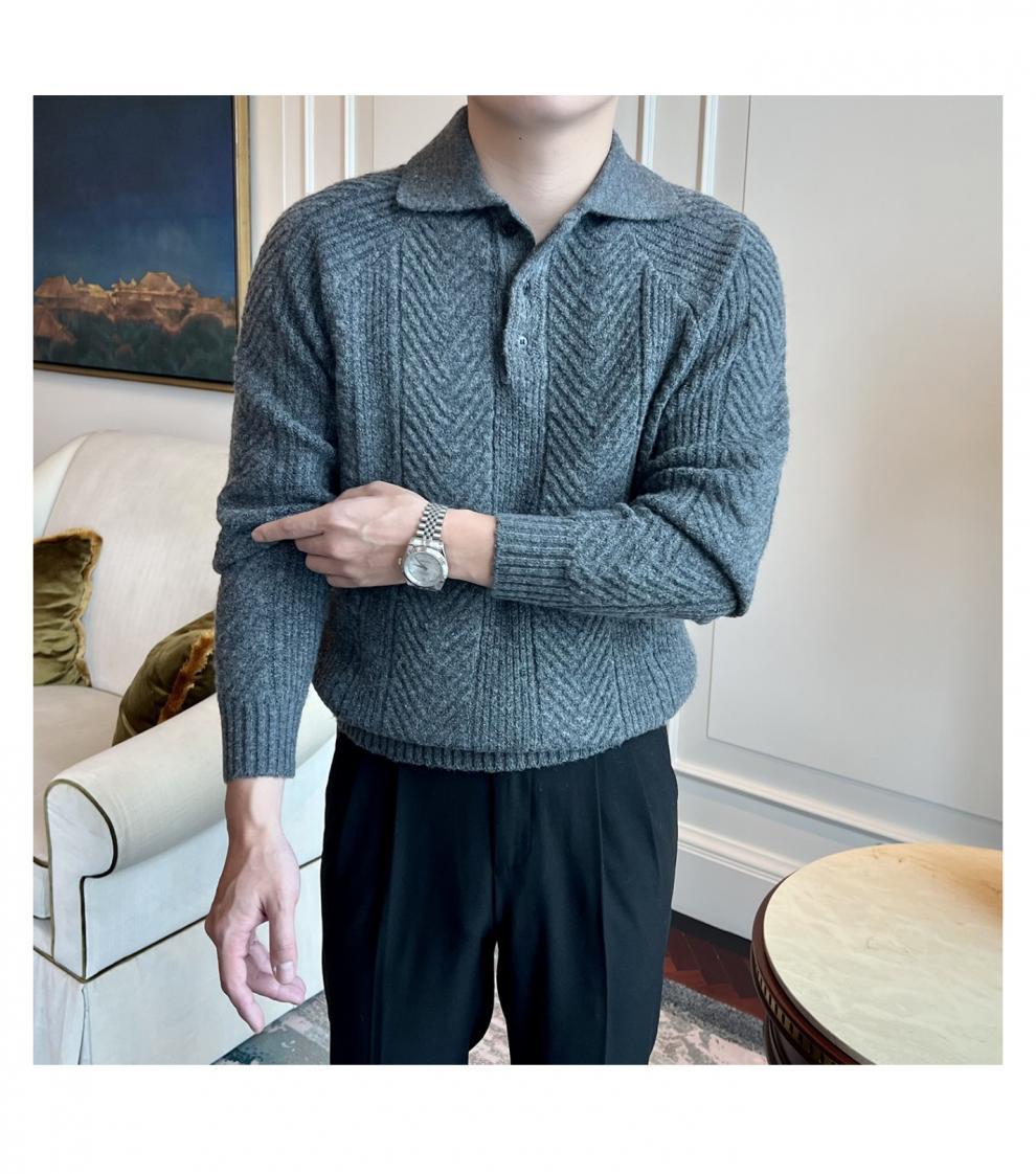 가을과 겨울 캐주얼 긴 소매 옷깃 스웨터 남성용 영국 빈티지 자카드 라이트 성숙한 슬림 스웨터스토어 가기