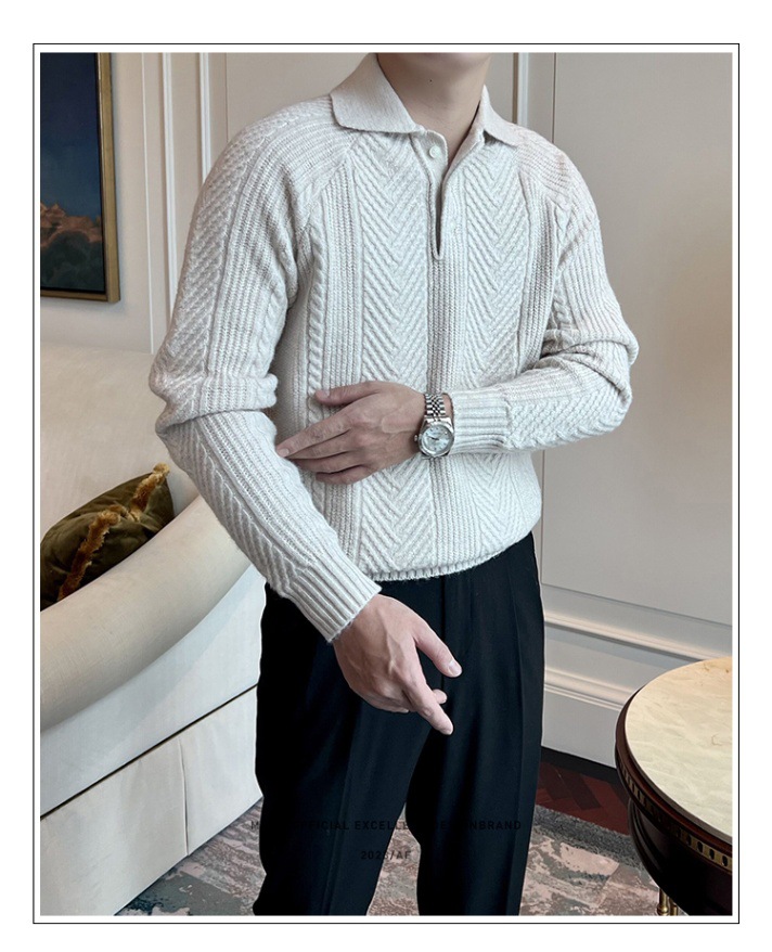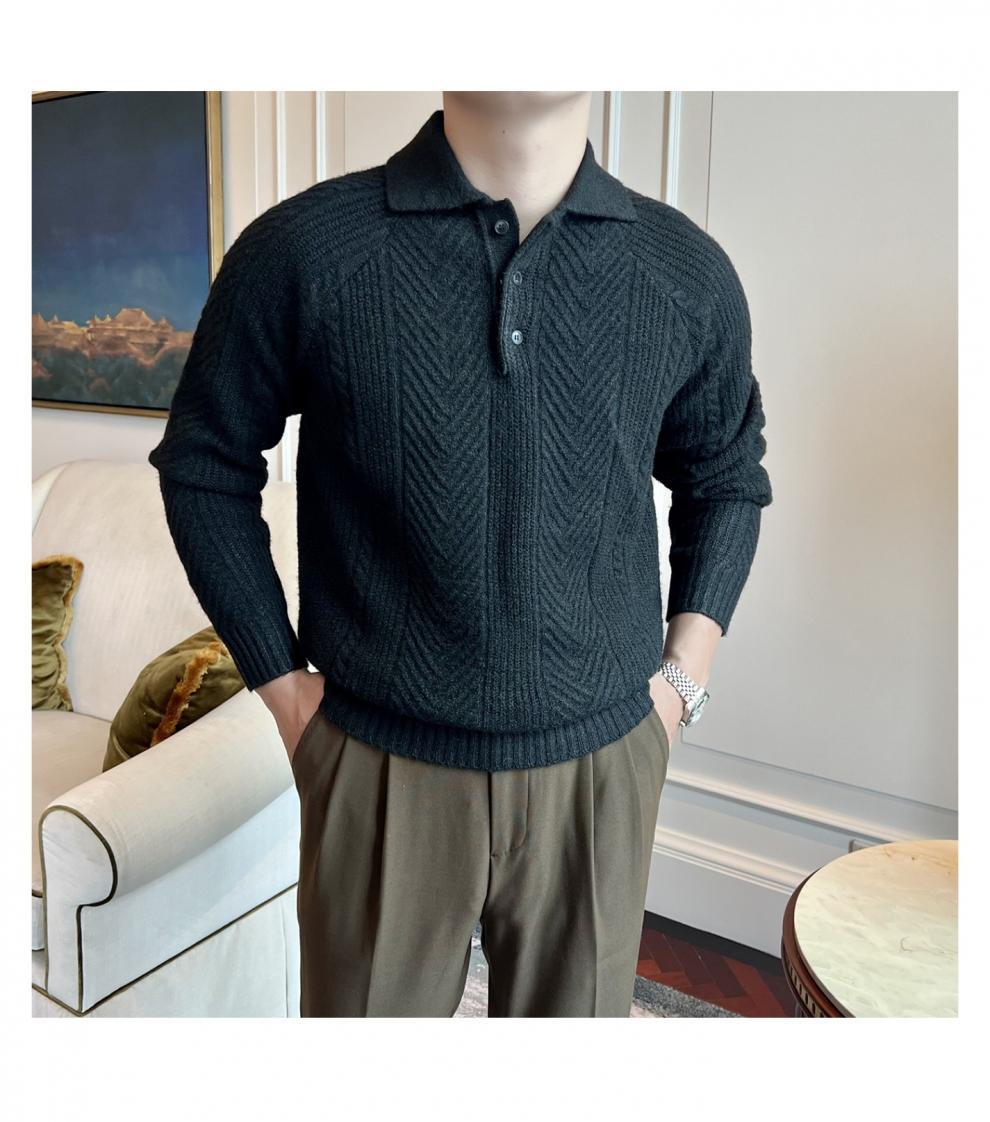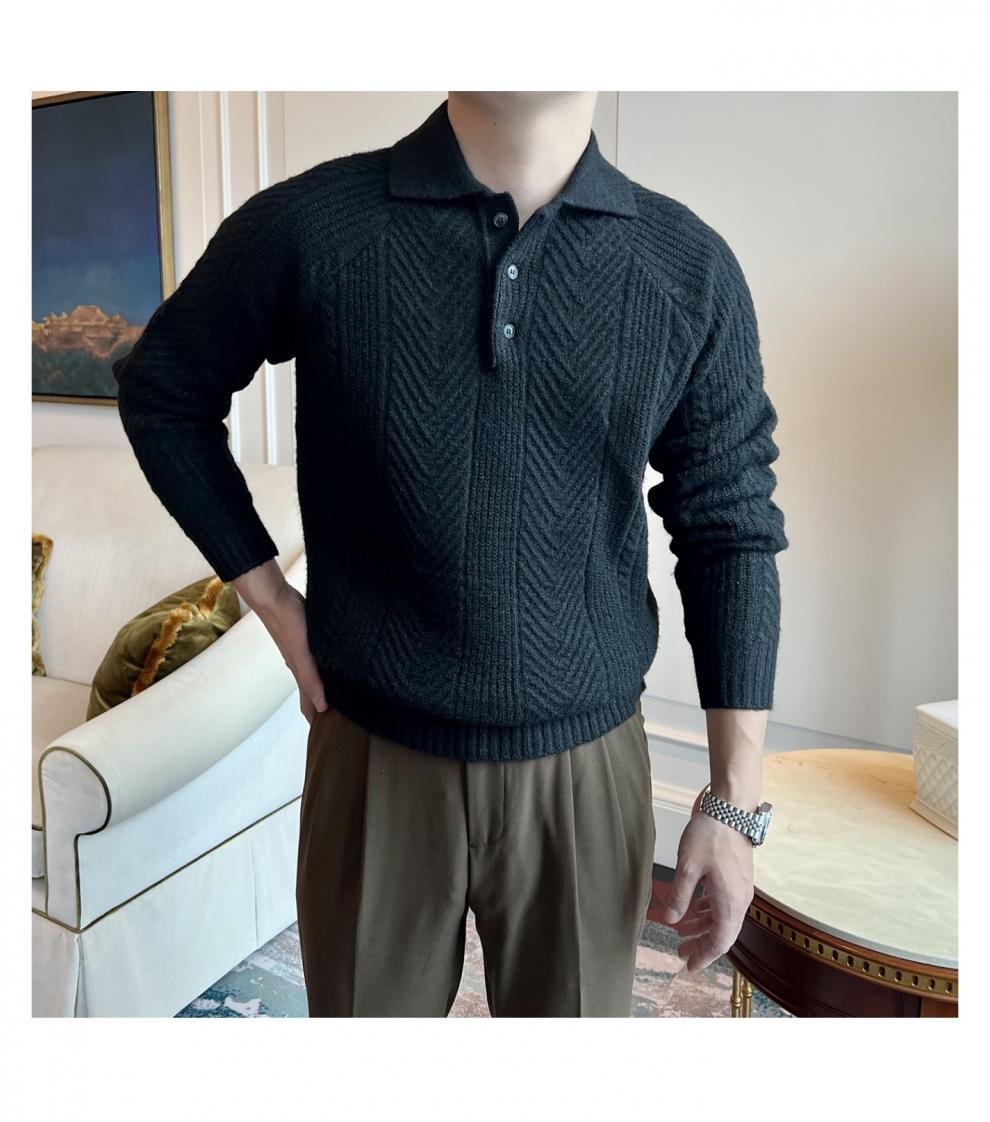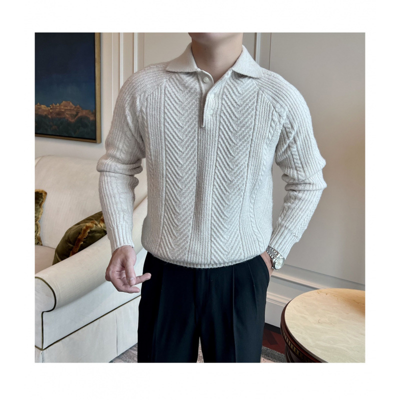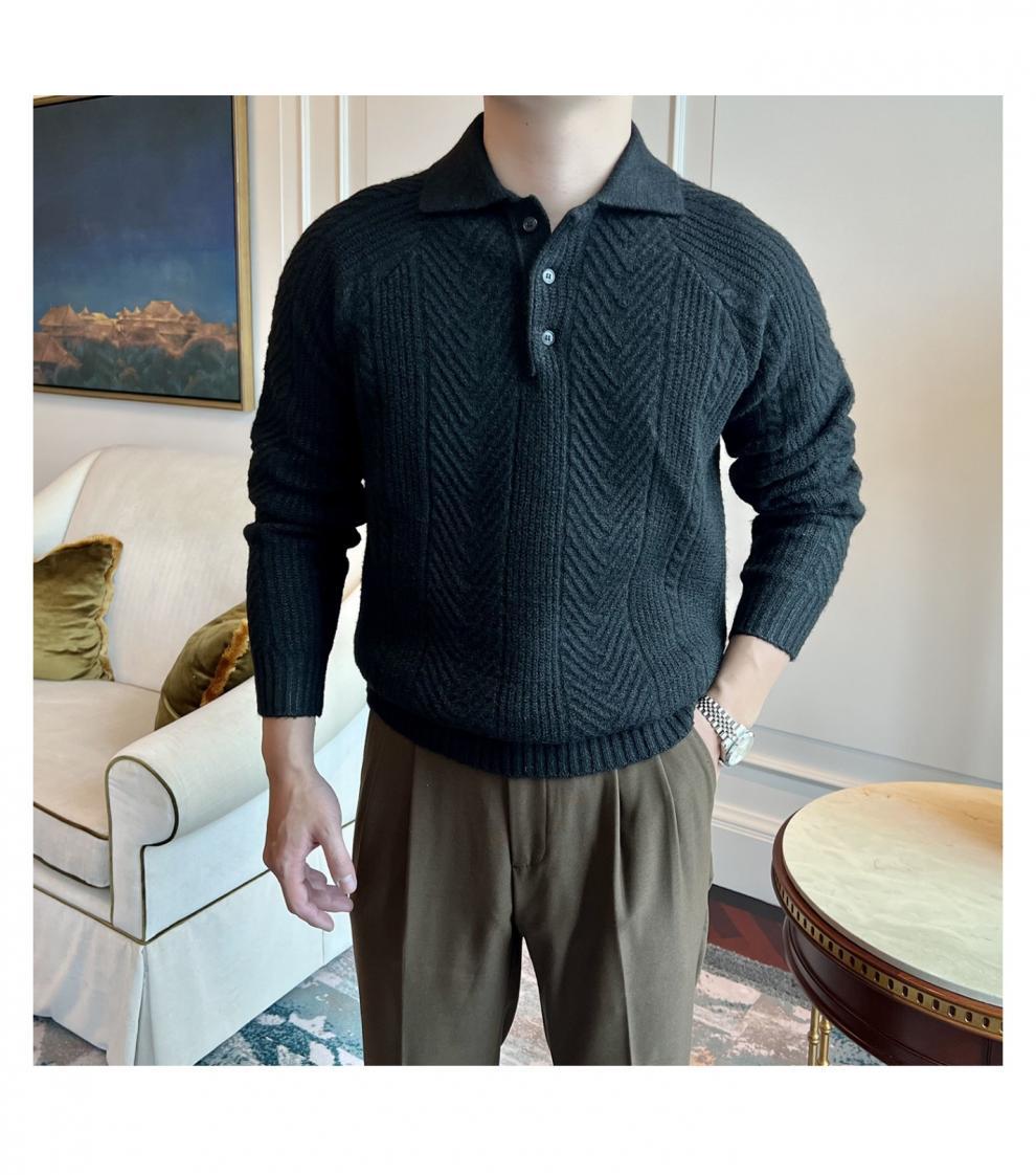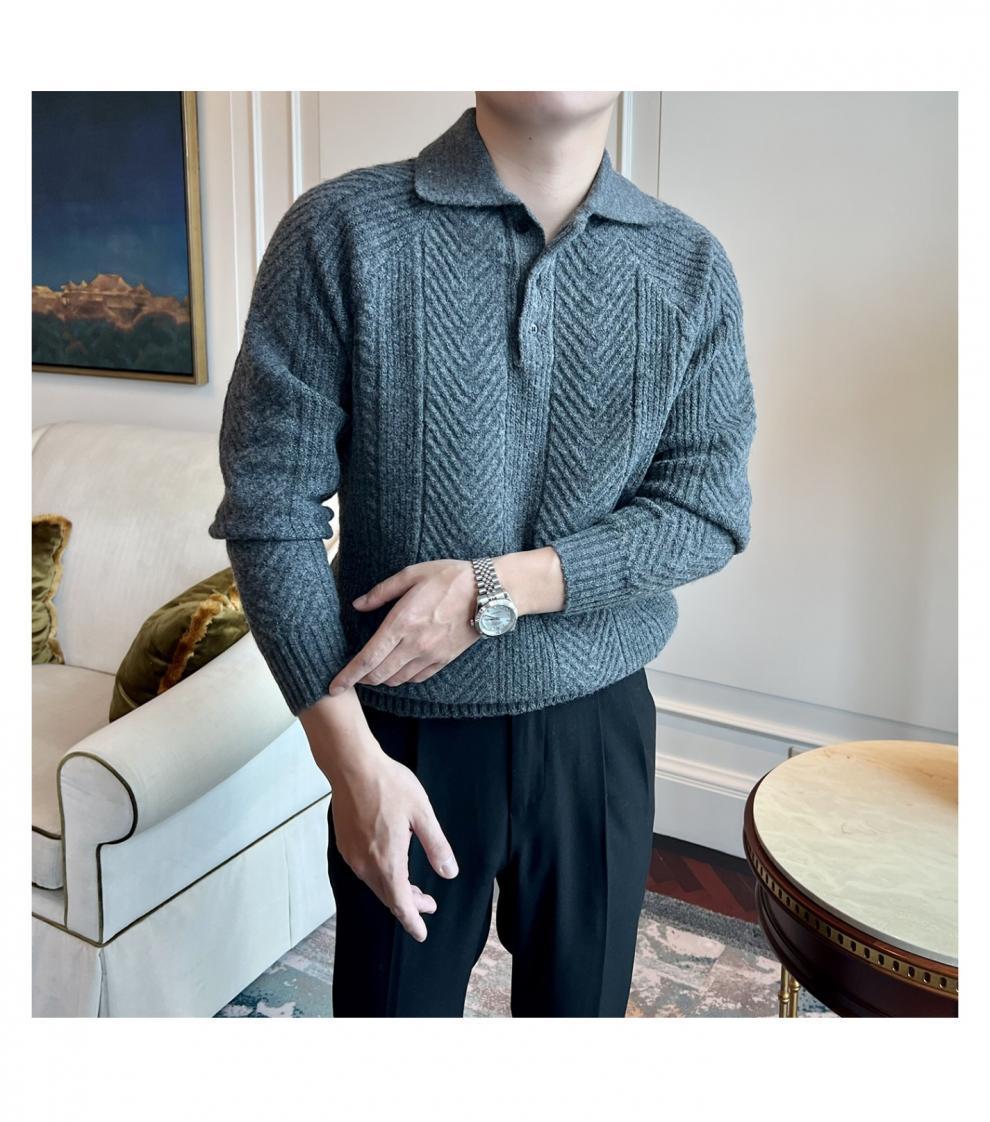 가을과 겨울 캐주얼 긴 소매 옷깃 스웨터 남성용 영국 빈티지 자카드 라이트 성숙한 슬림 스웨터스토어 가기