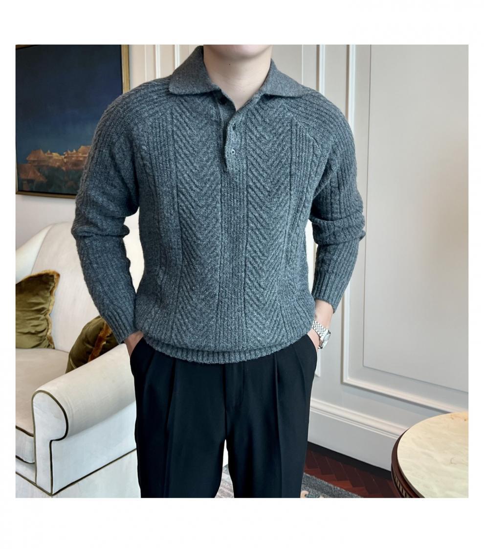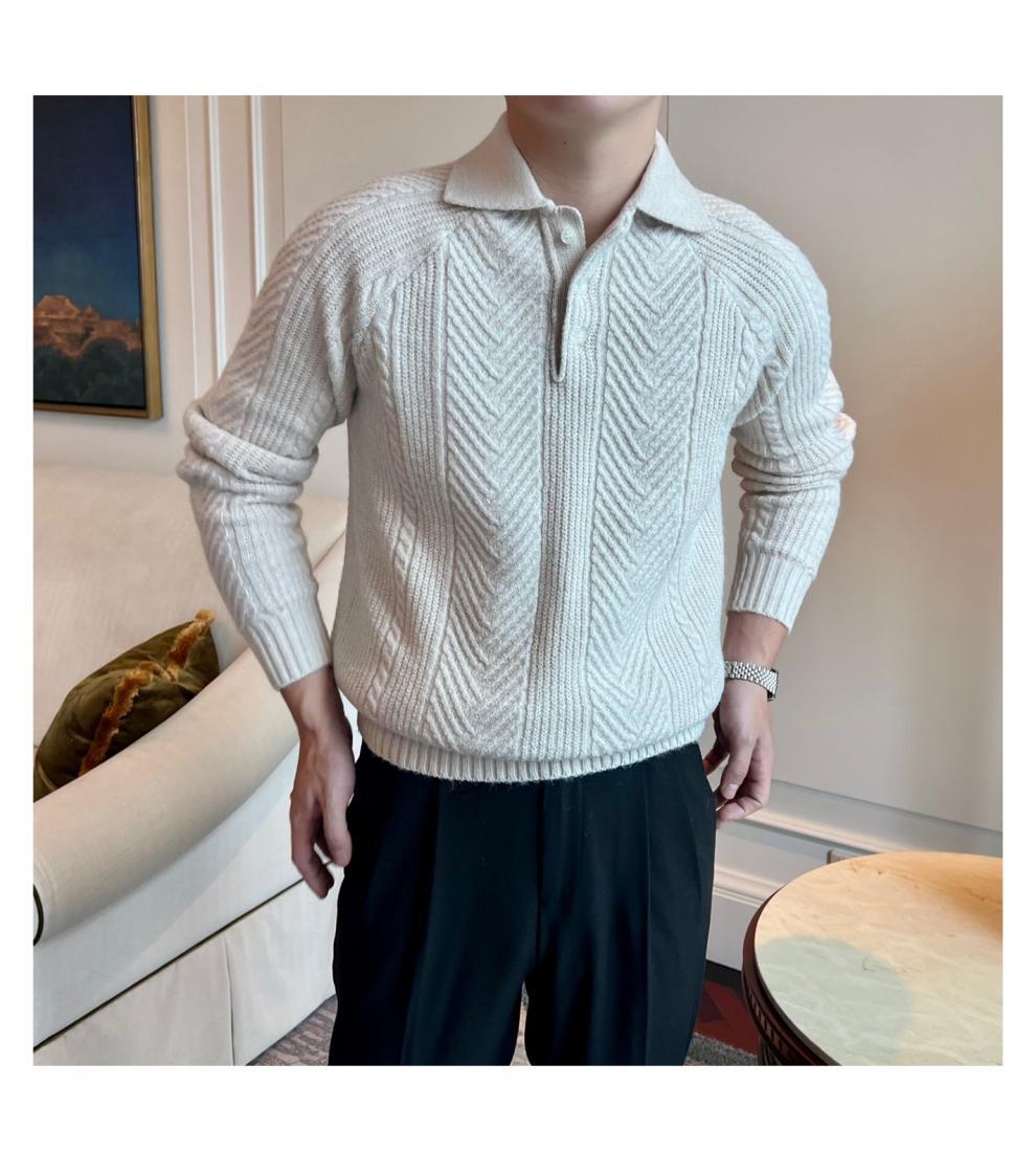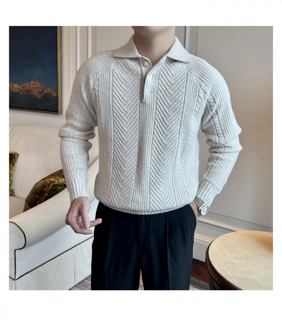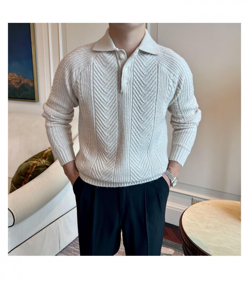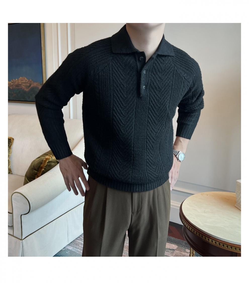 가을과 겨울 캐주얼 긴 소매 옷깃 스웨터 남성용 영국 빈티지 자카드 라이트 성숙한 슬림 스웨터스토어 가기