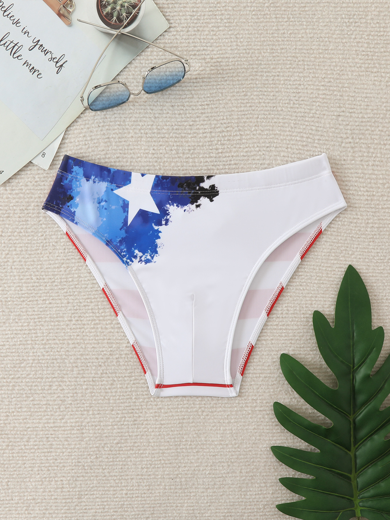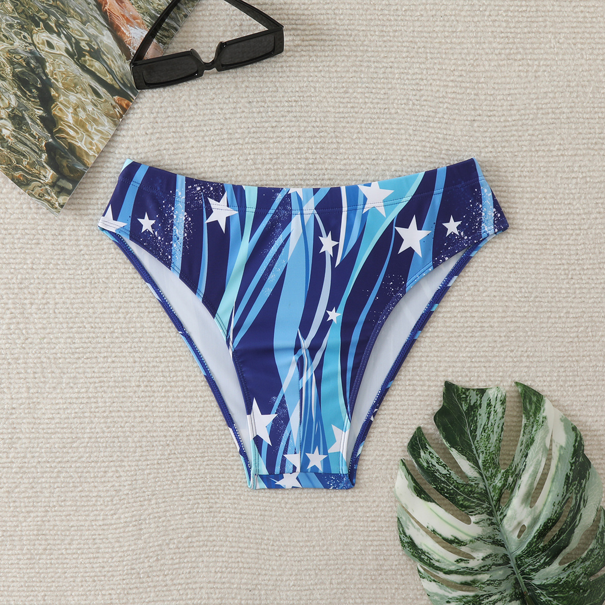 남성용 크로스보더 삼각 수영복 프린트 스티치 유럽 및 미국 스타일 수영복 비치 청소년용 로우 웨이스트 트렌디 수영복스토어 가기